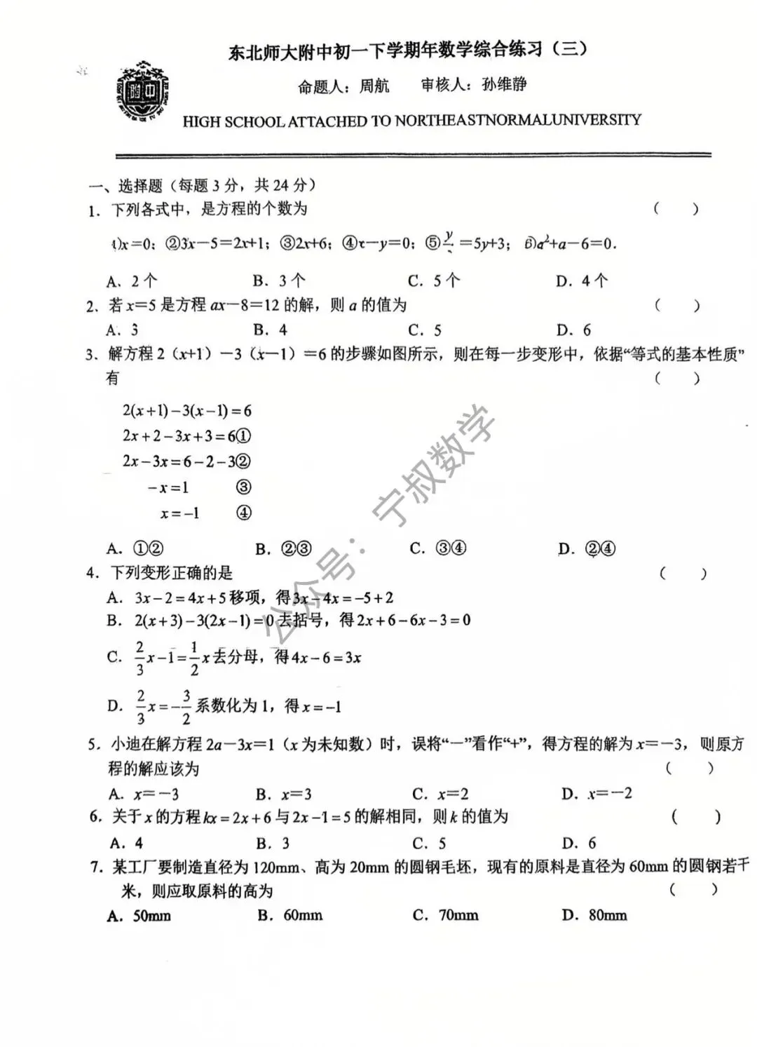 特别说明:本号由数学张老师(笔名宁叔)主理运营,所分享的试卷和资料,只用于帮助老师和学生们的学习使用,仅供参考。试卷资料收集随缘,部分试卷收集时便无答案。如需更全面更系统的长春名校试卷和习题(付费教辅资料),可直接添加张老师微信咨询(17504411775电话同微),整理资料不易,能力有限,非诚勿扰。