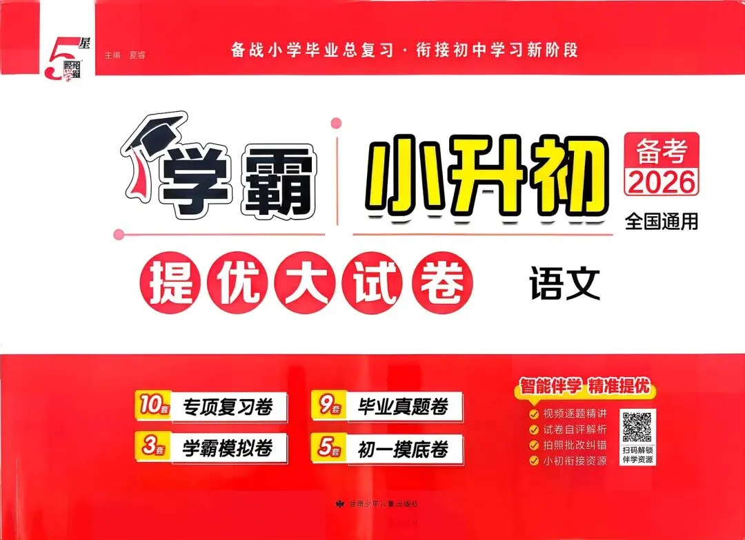 今天分享的是:备考2026小升初《学霸提优大试卷》语文,高清电子版建议分享到班级群/年级群,让家长打印出来,帮助孩子学习!