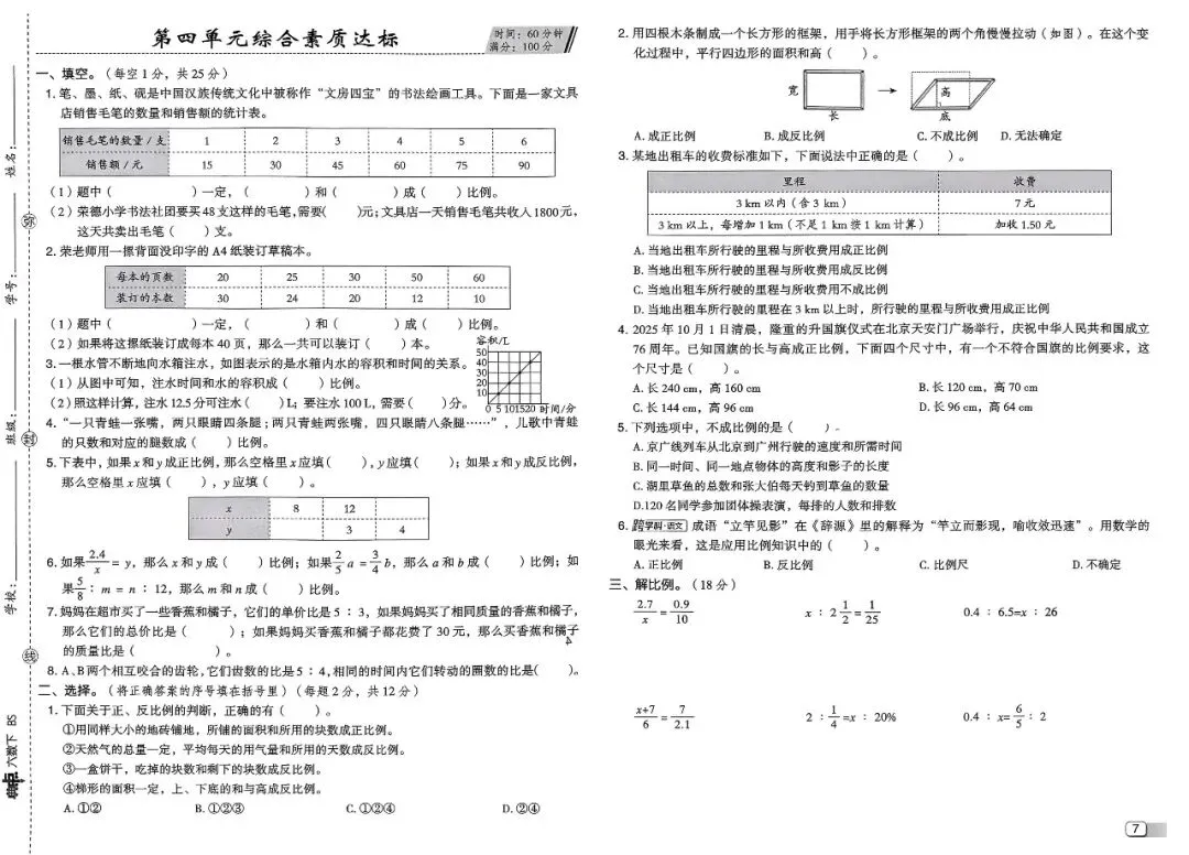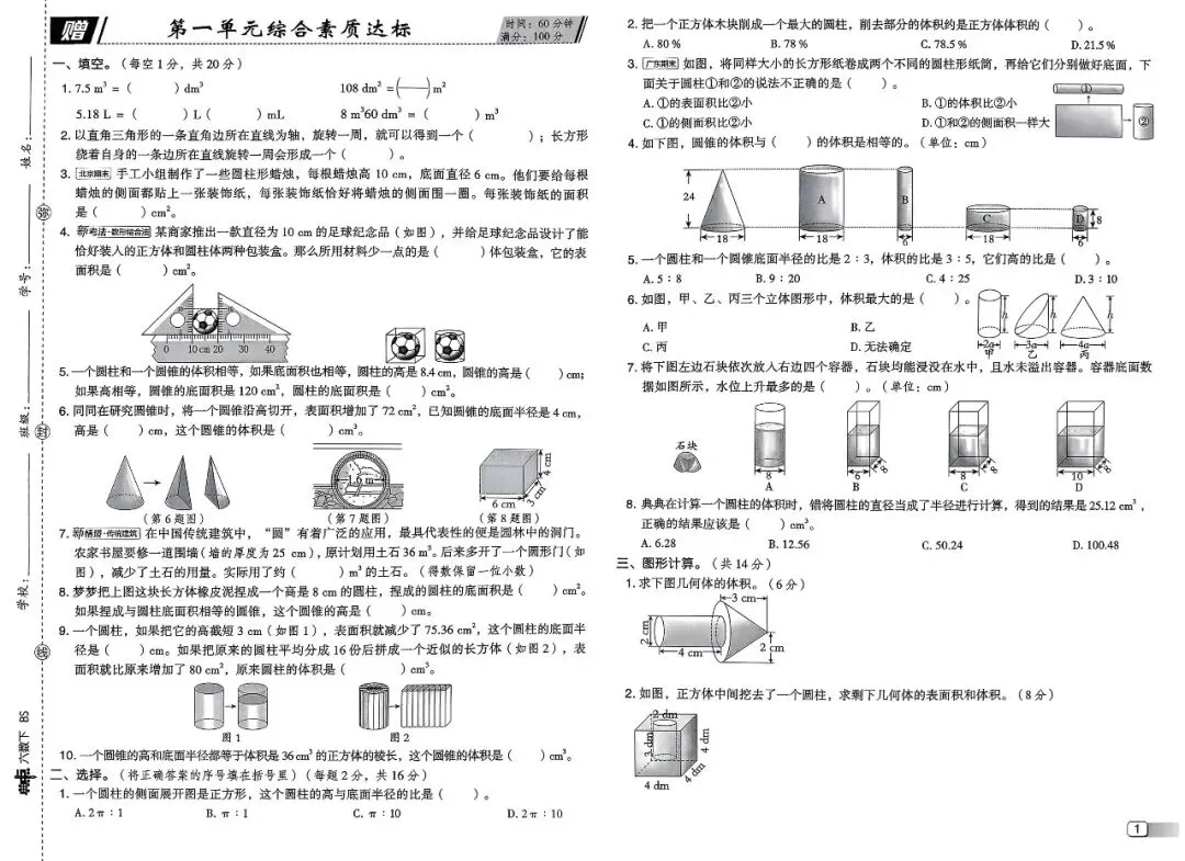 六年级数学下册《单元测试卷》含答案,可下载(2026春)