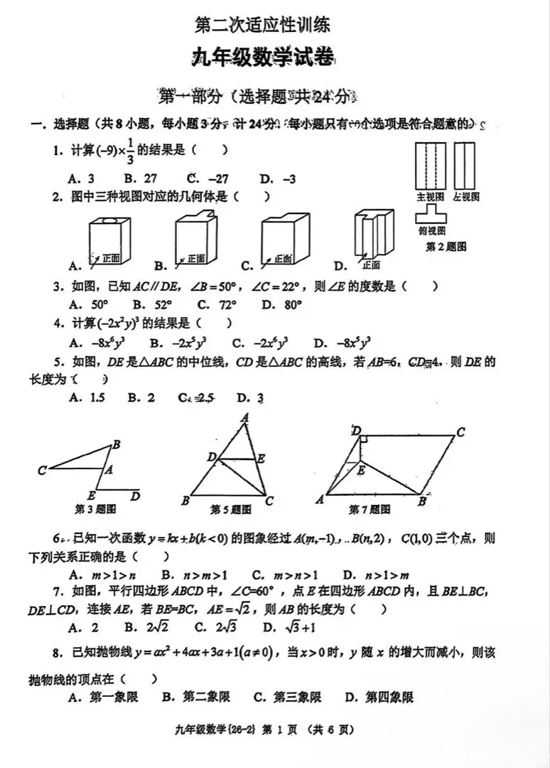 2026届【德阳二诊】试卷及答案(持续更新)