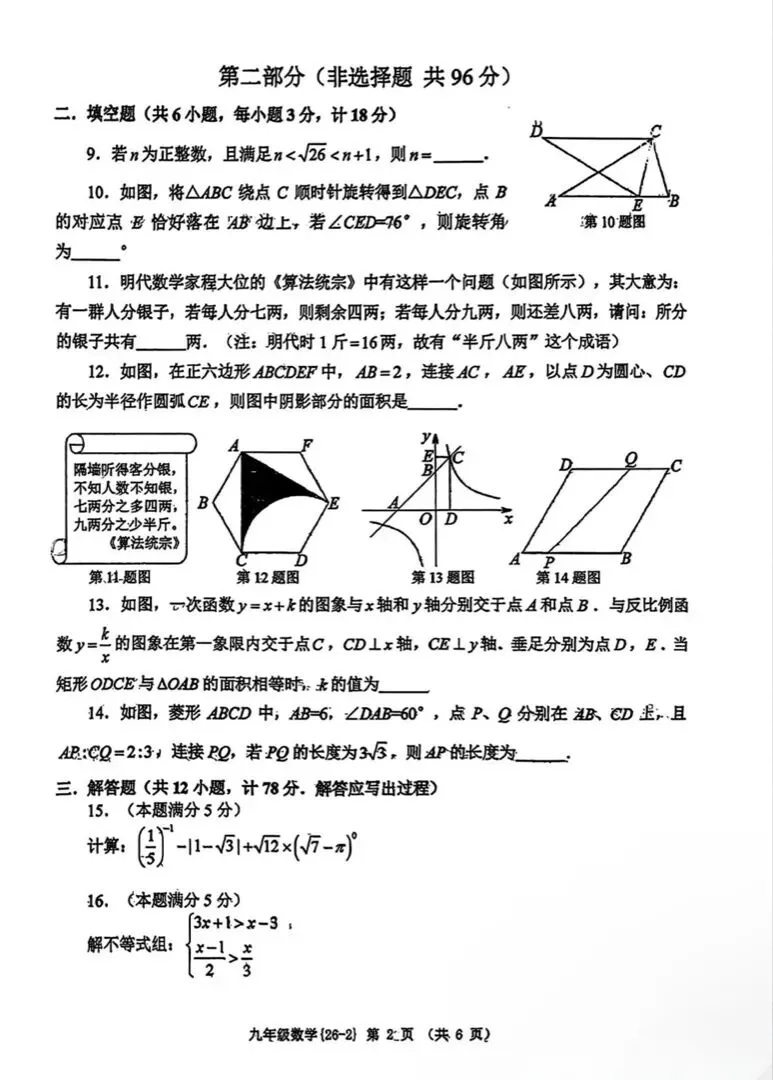 2026陕西数学中考模拟试卷