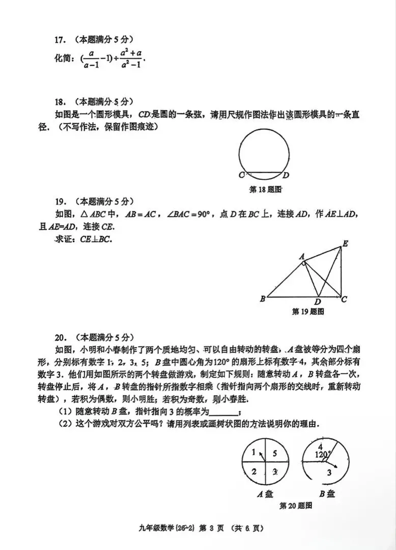 26年长郡一模数学试卷新鲜出炉
