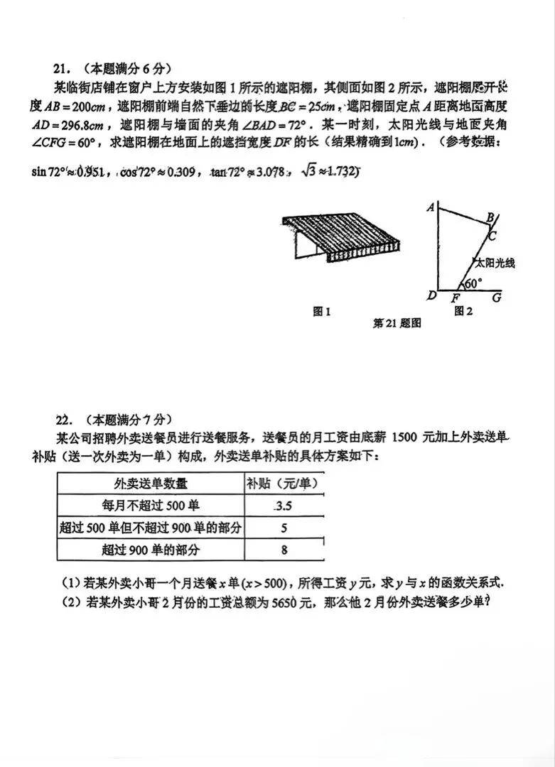 【二模详解】静安区初三二模数学试卷