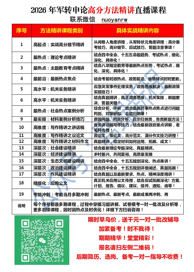 《2026年成都军转申论考试精讲课程》免费发送学习!详情如下,下方扫码免费发送高质量精讲课程~一、2025年成都军转考试概述