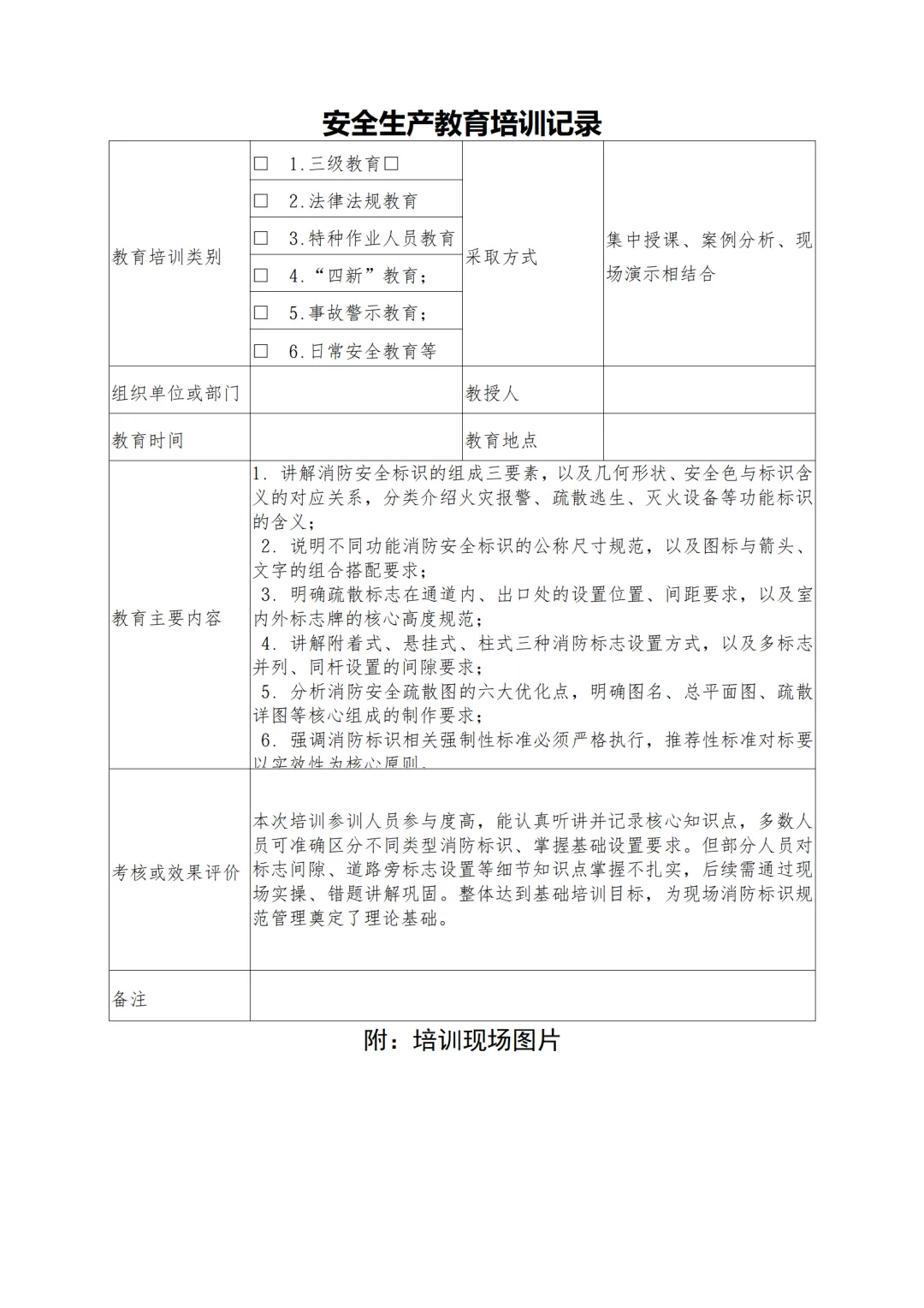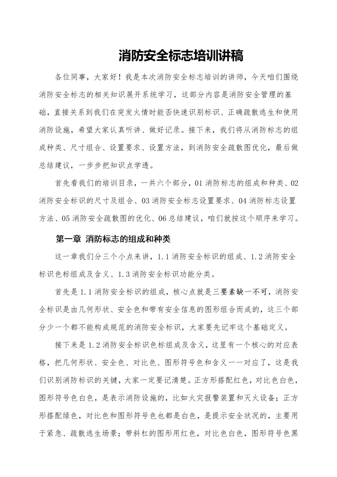 >消防安全标志培训( 讲稿+试卷+记录+签到)