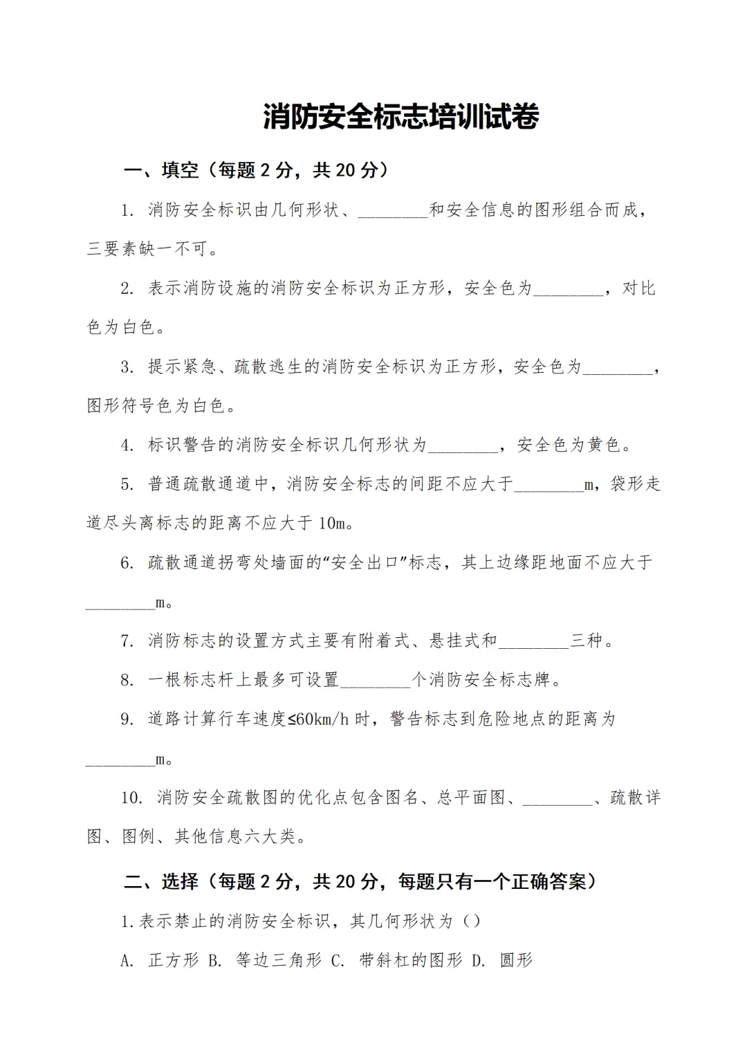 消防安全标志培训( 讲稿+试卷+记录+签到)