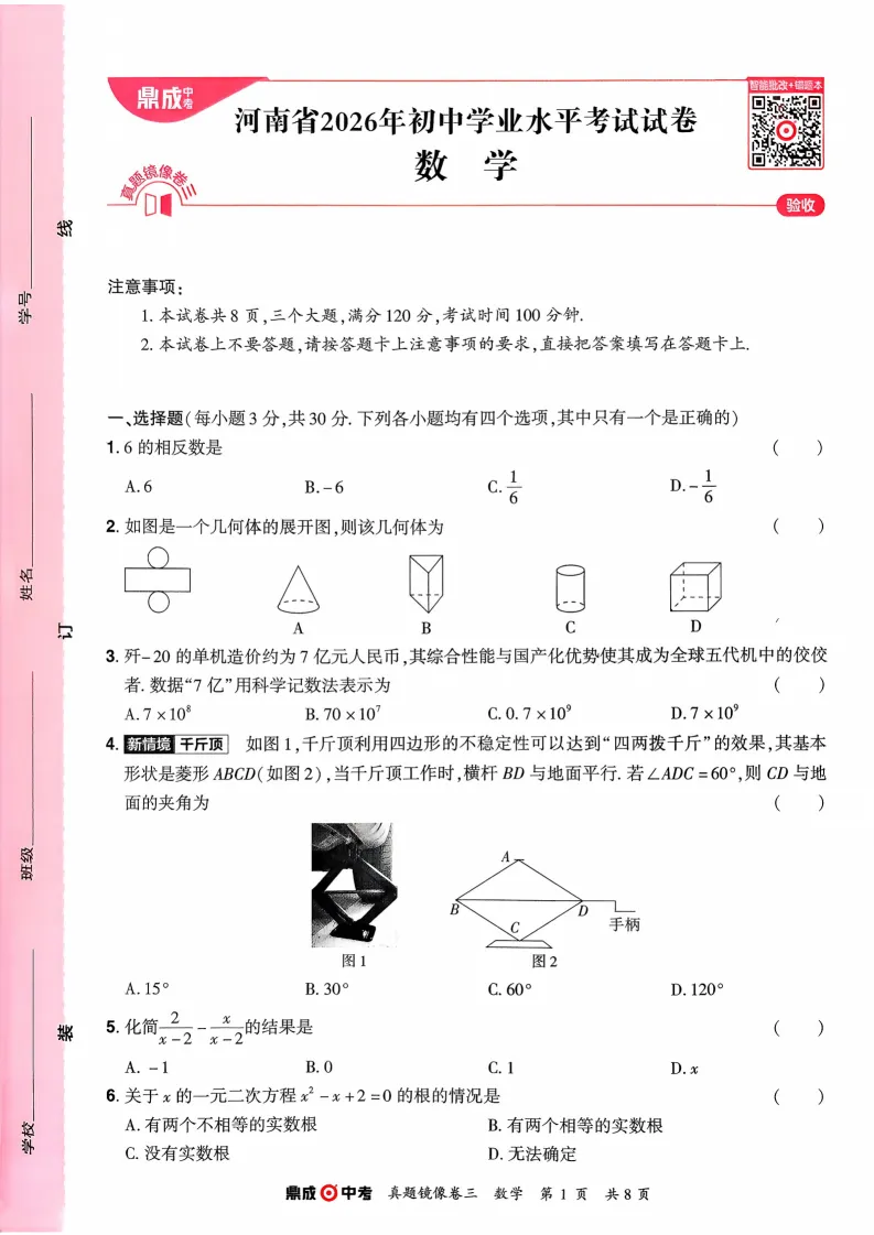 | 2026河南中考模拟数学试卷及答案解析(卷1-2) | |