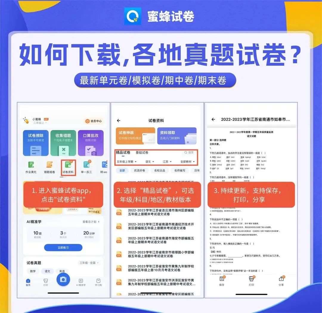 4️⃣试卷资料:各地期中/期末/单元卷下载打印