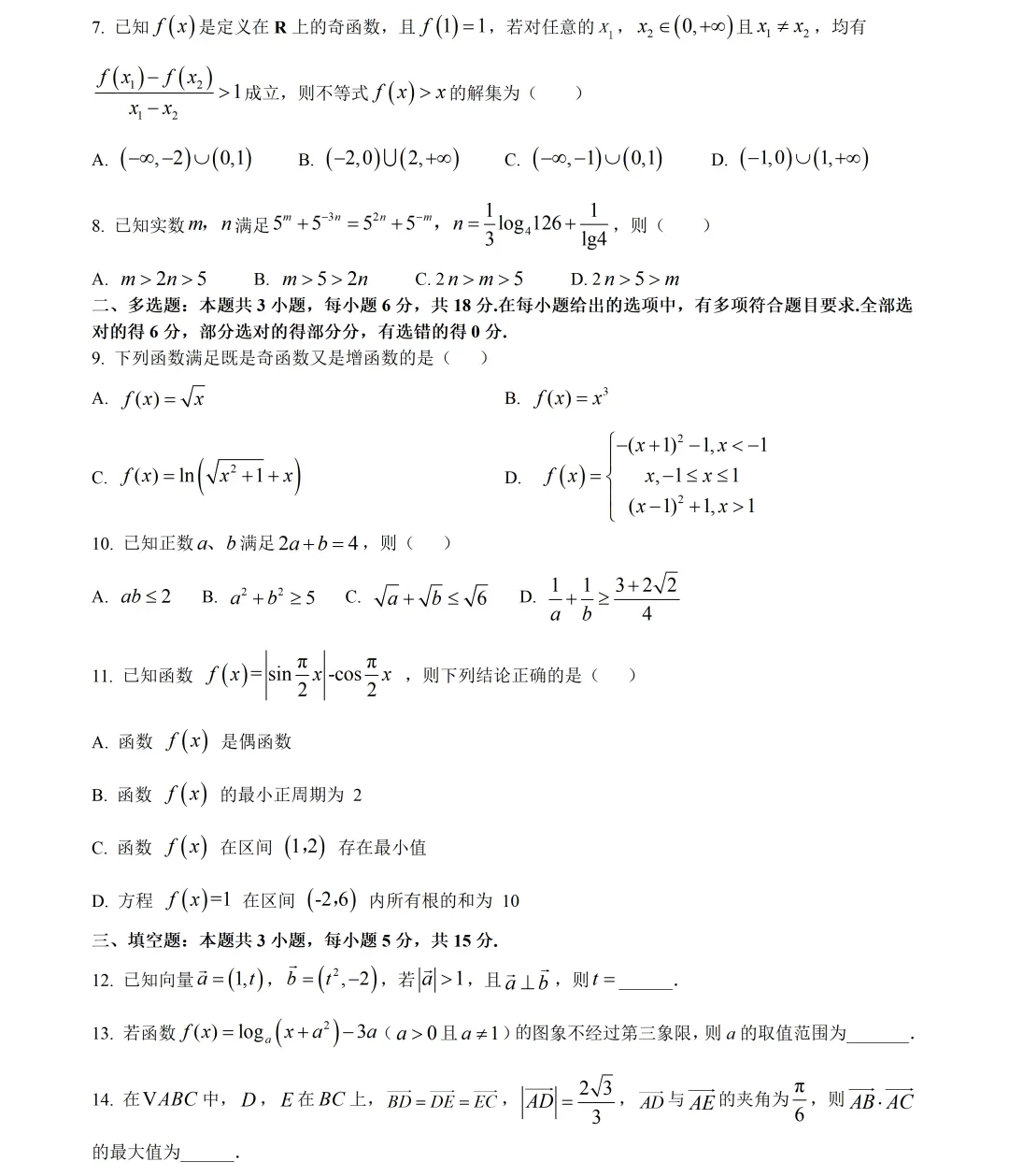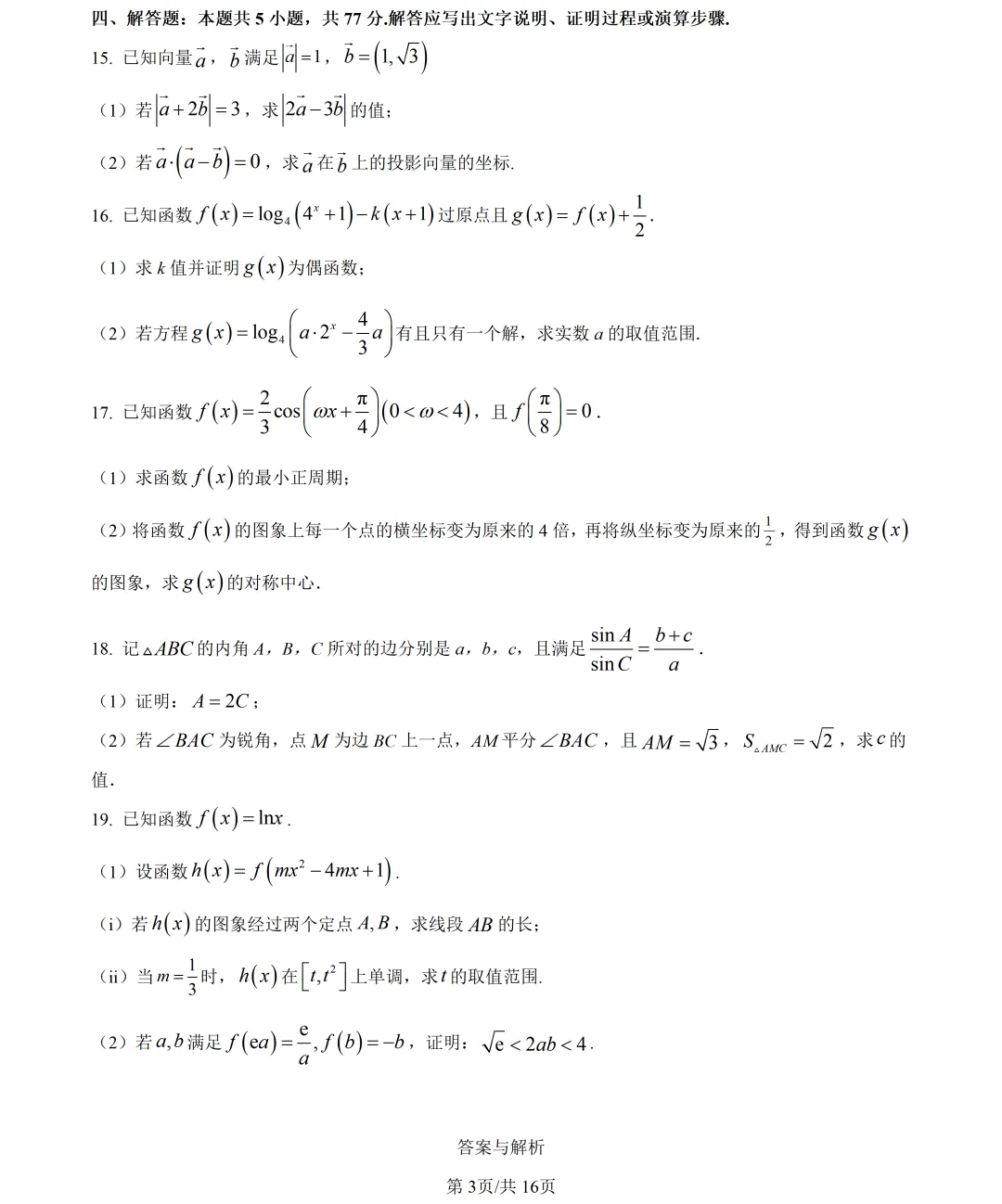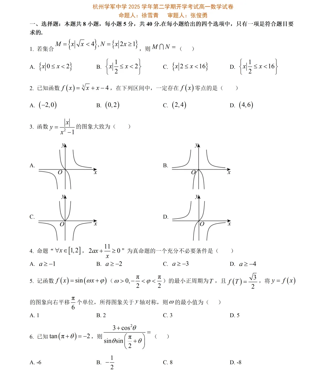 学军中学高一下开学【数学·含答案与解析】PDF版原卷及答案解析请联系朱老师或直接加QQ群获取