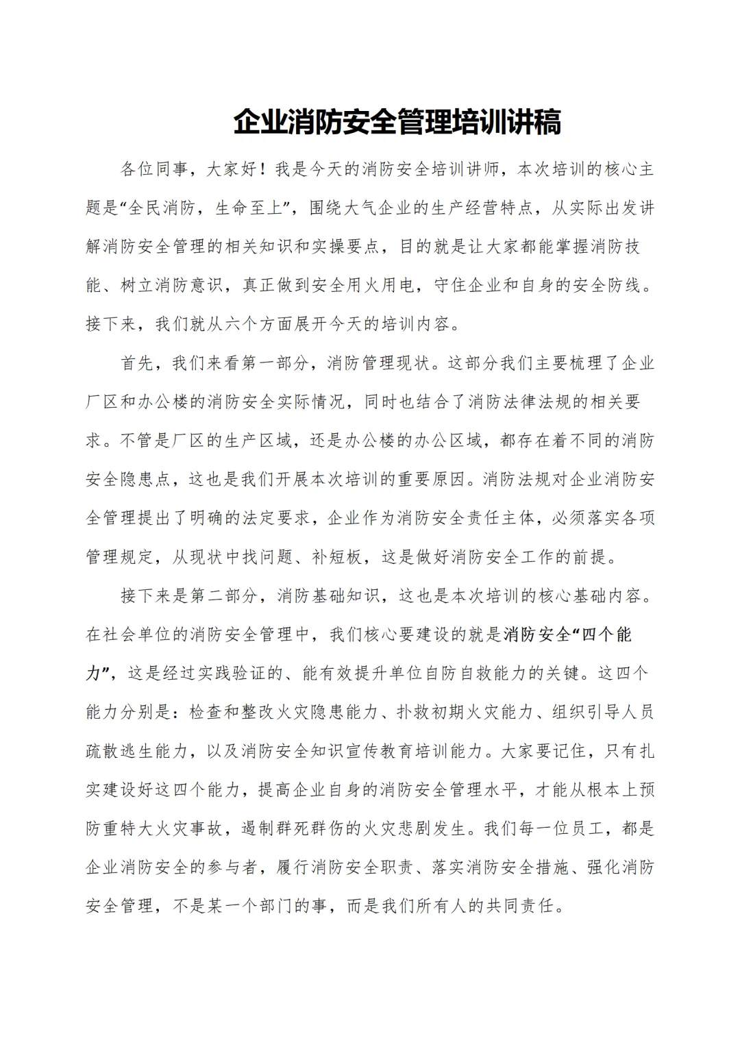 >企业消防安全管理培训( 讲稿+试卷+记录+签到)