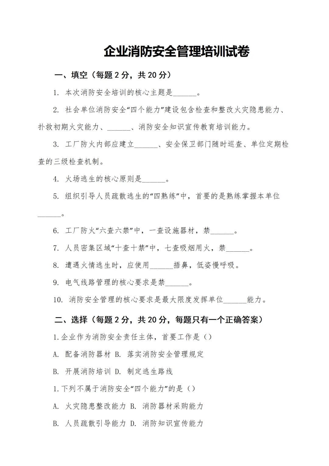 企业消防安全管理培训( 讲稿+试卷+记录+签到)