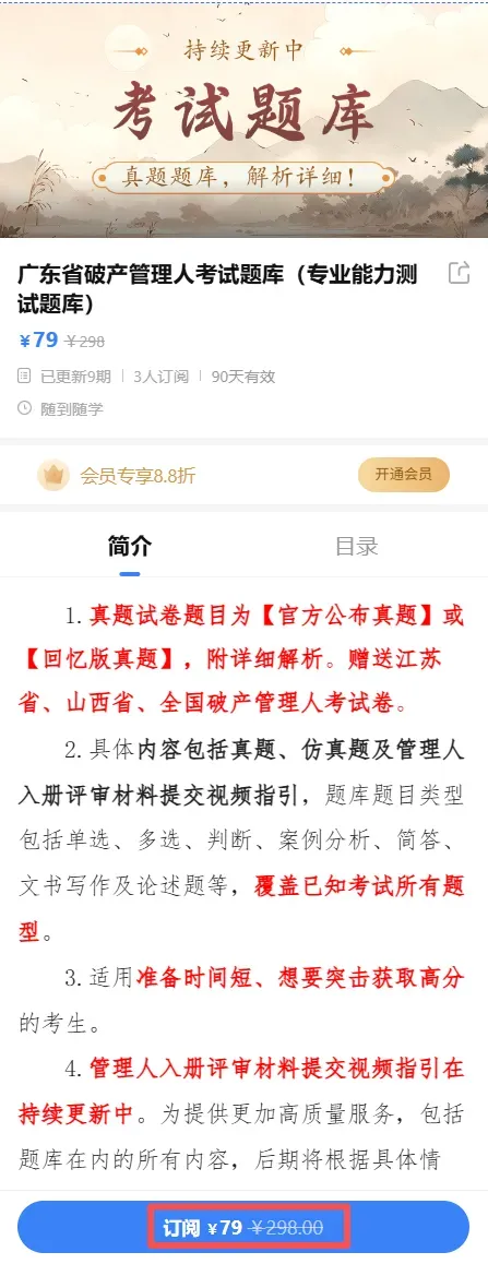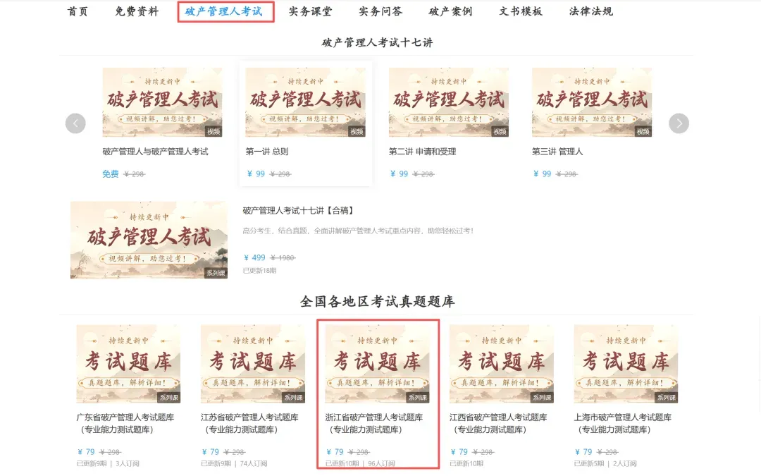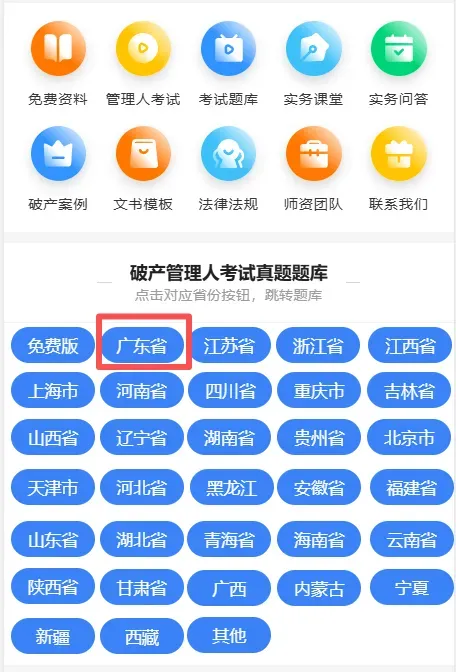 真题全面:包含广东省、江苏省、重庆市、吉林省、山西省等各地破产管理人专业能力测试(考试)真题,拥有全网最全题库。