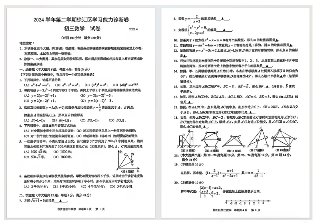 今天直接给大家安排上——2025届上海各区初三二模数学试卷+答案解析(高清PDF,可打印)!文末领取