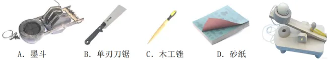 22.小明准备用松木条和松木板设计制作如图所示的迷你弹力投石器模型,下列工具中肯定用不到的是