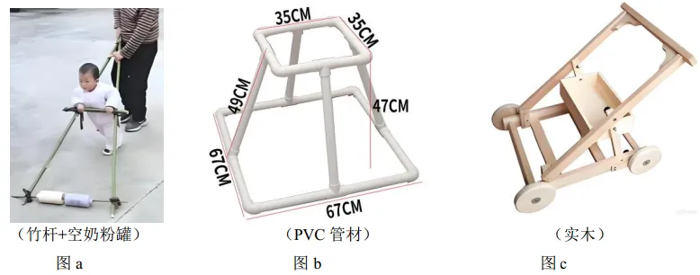 28.小明准备为处于学步阶段的外甥自制一辆学步车。为此,他收集并整理了三款易于自制的学步车设计方案,如图a、图b、图c所示。请完成以下任务: