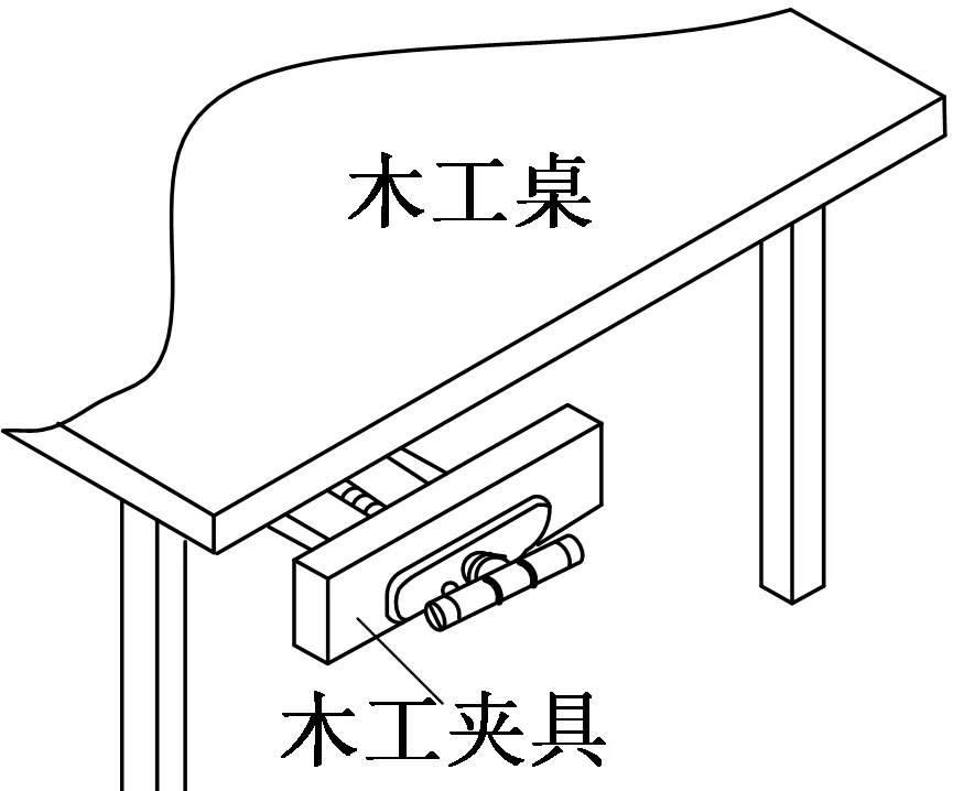 B.可将实木档夹持在如右图所示的木工夹具中进行凿榫眼操作