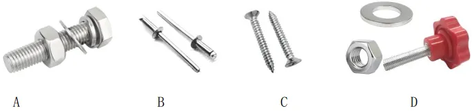 (3)第28题图d方案中,支撑杆通过与斜杆上的不同安装孔连接,实现把手的高度调节;解除该处连接可实现折叠。为便于调节与折叠操作,该处连接应选用的标准件是(单选) ▲