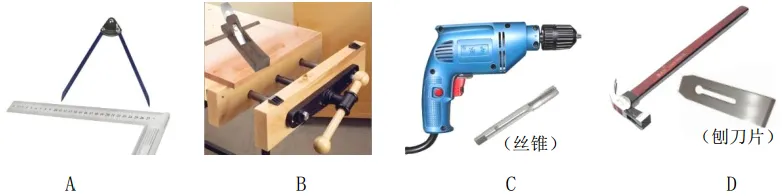 (4)在加工和装配学步车过程中,下列工具搭配正确且用到的是(单选) ▲