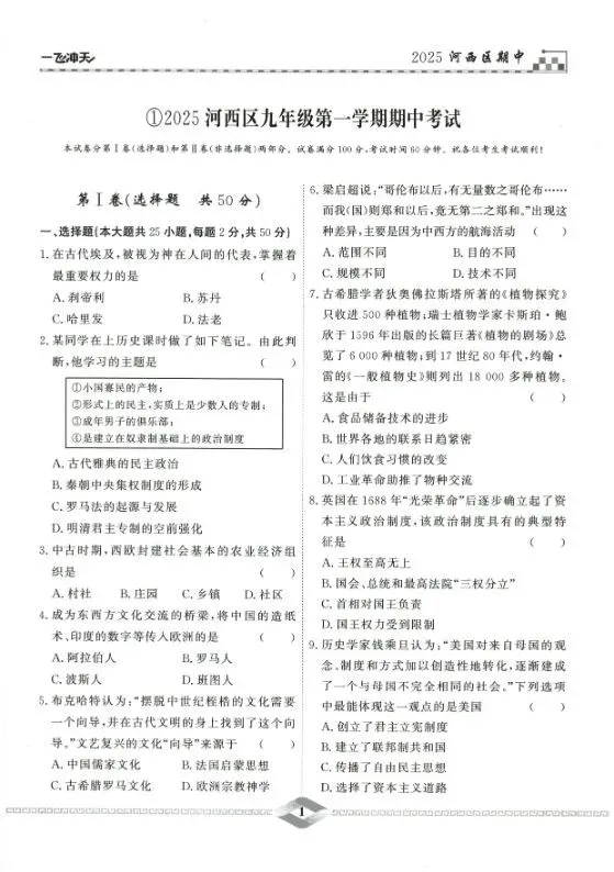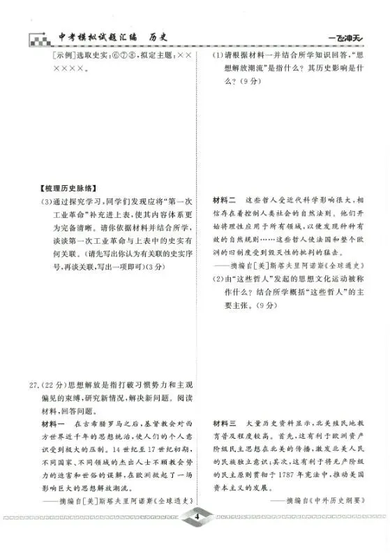 >2026中考历史最新模拟试题汇编|可下载打印