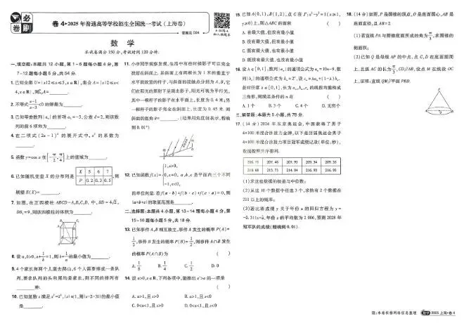 【数学】2025届上海各区初三二模数学试卷+答案!高清可打印