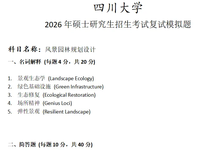 >四川大学风景园林规划设计考研复试真题模拟