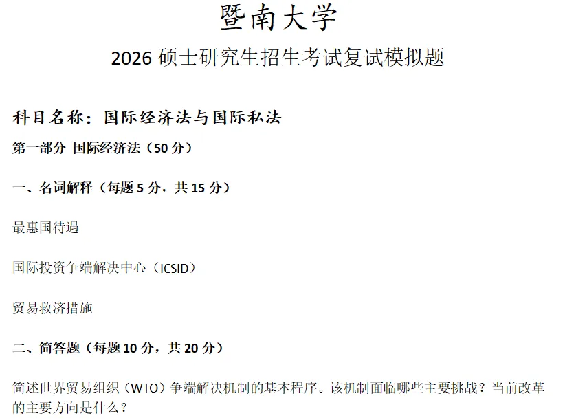 当前位置:首页>考研真题>暨南大学国际经济法与国际私法考研复试真题模拟