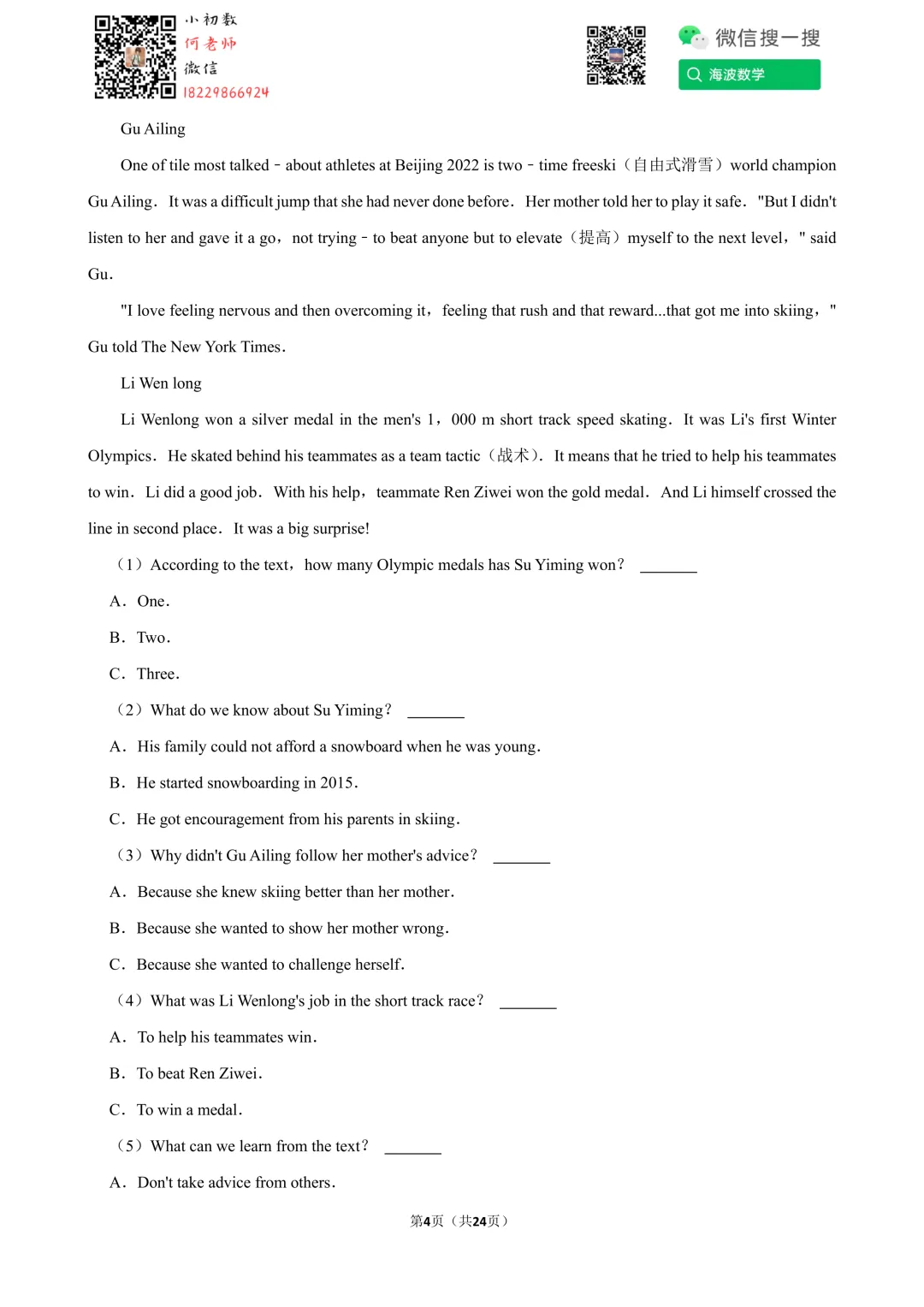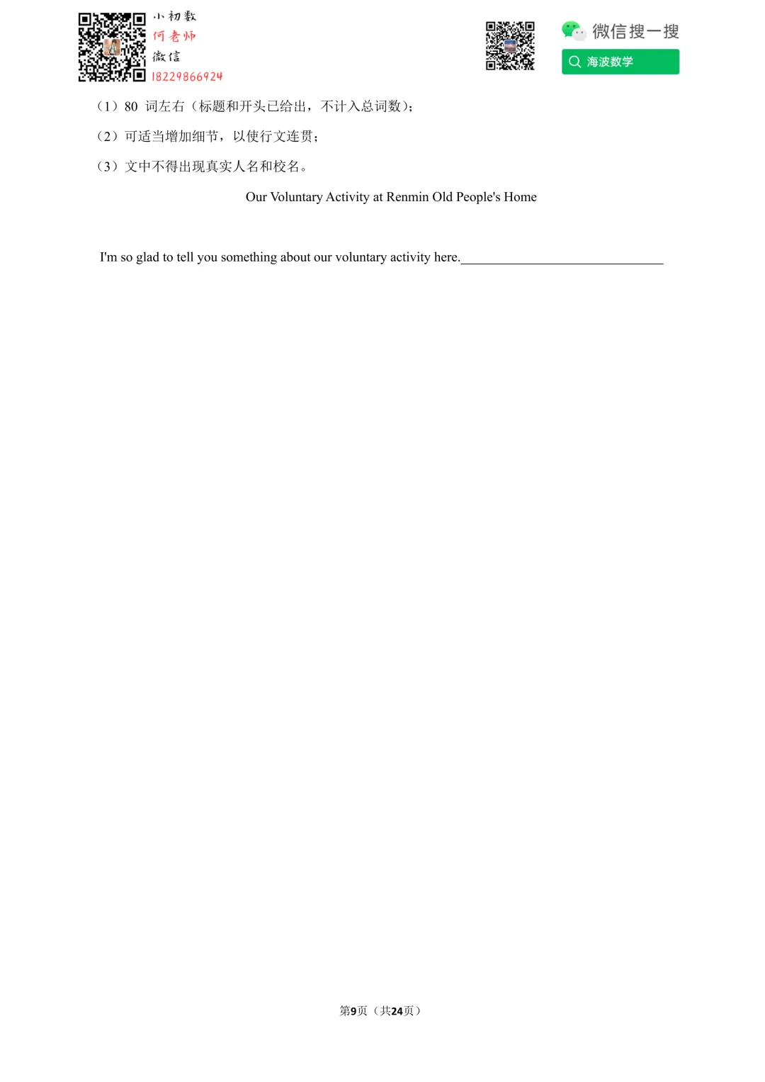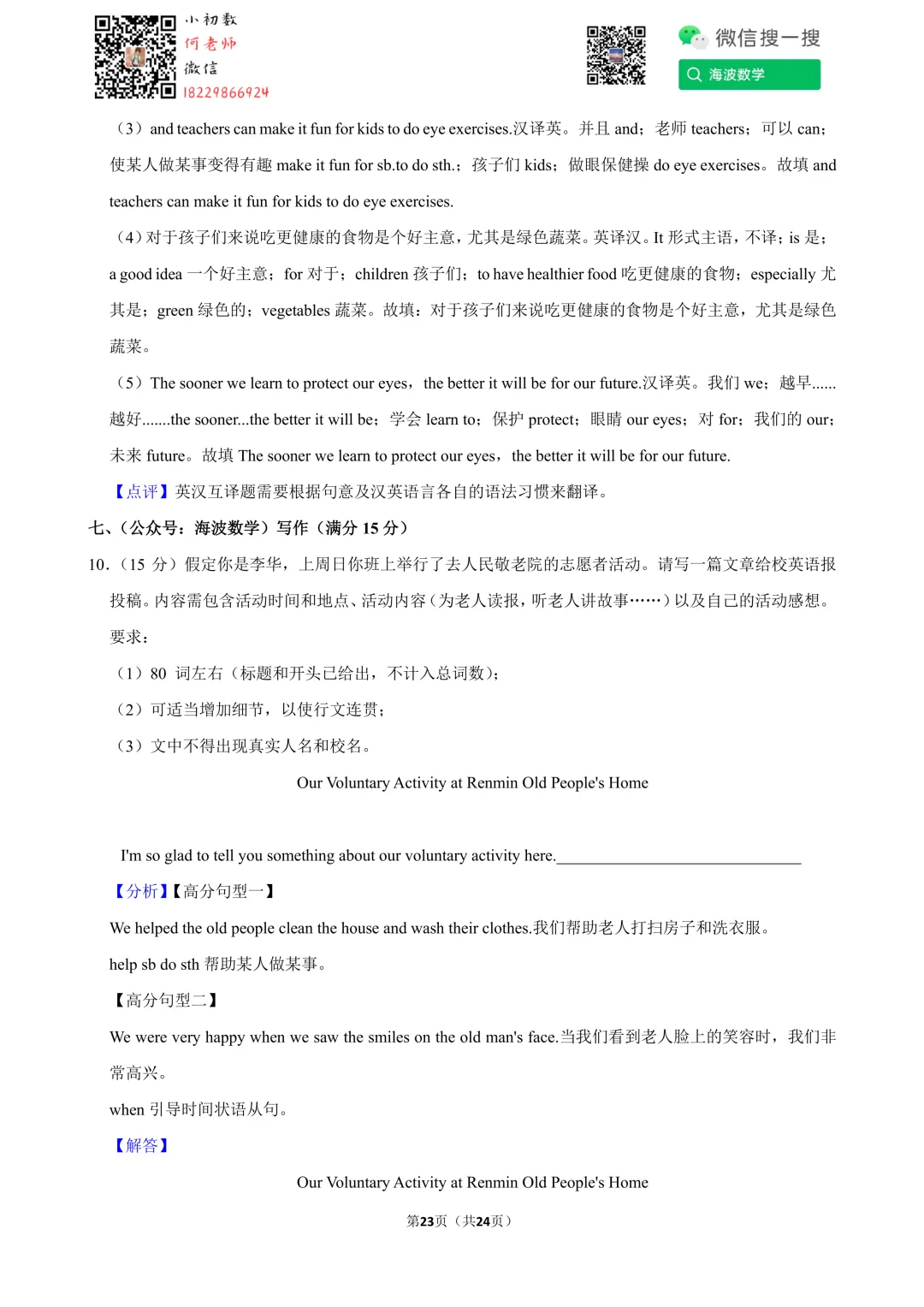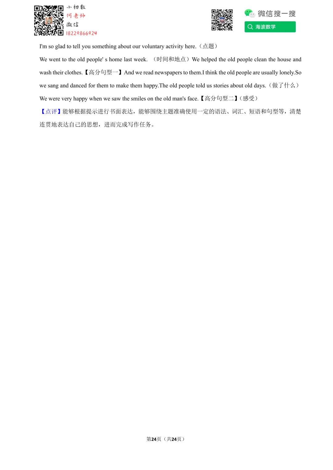 ①扫码添加何老师微信进对应年级资料分享微信群