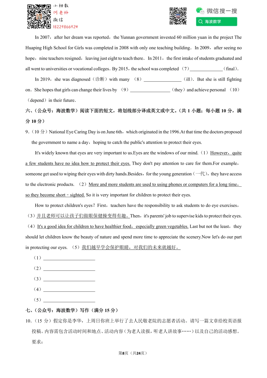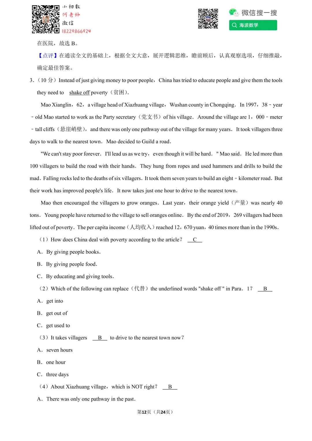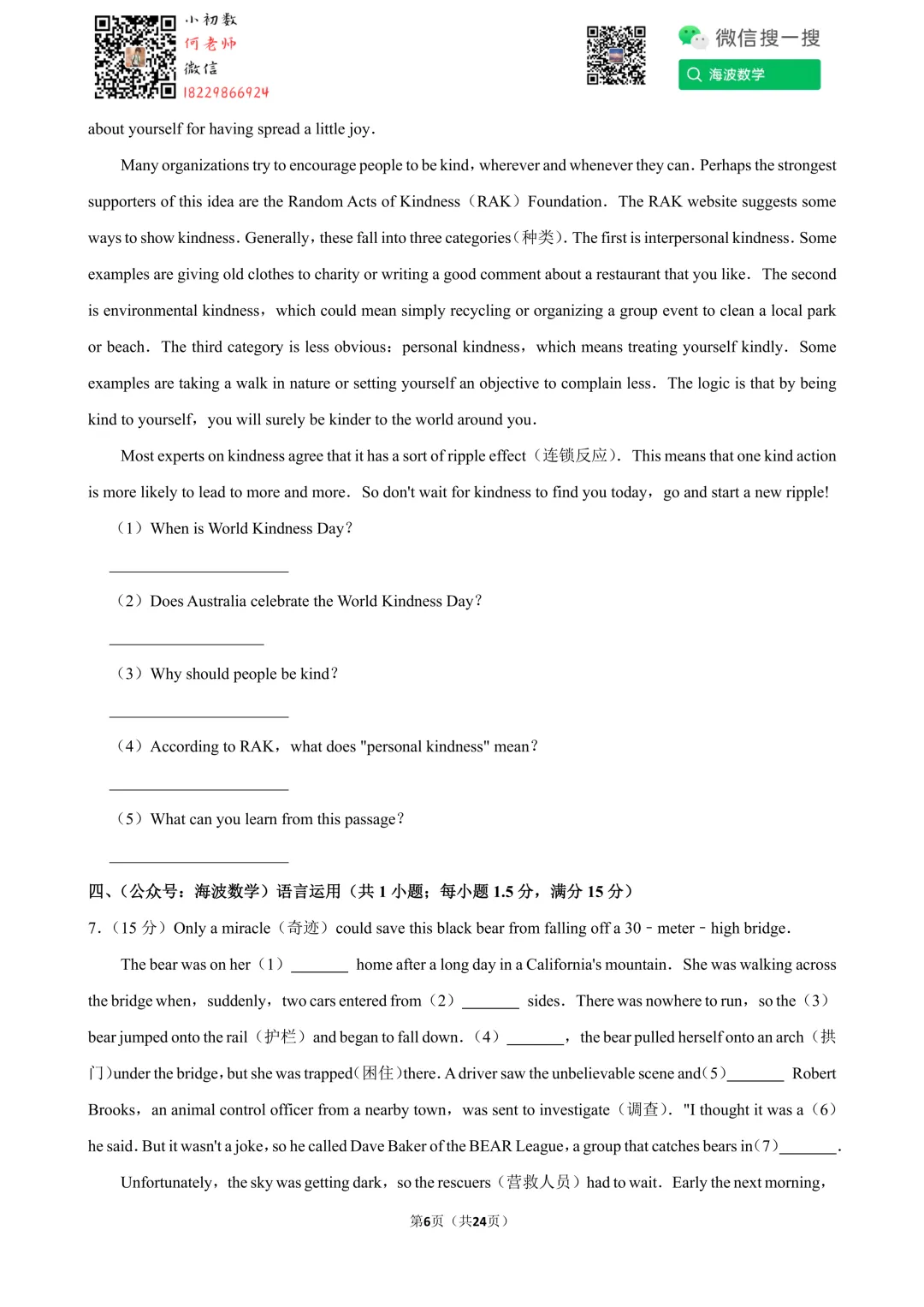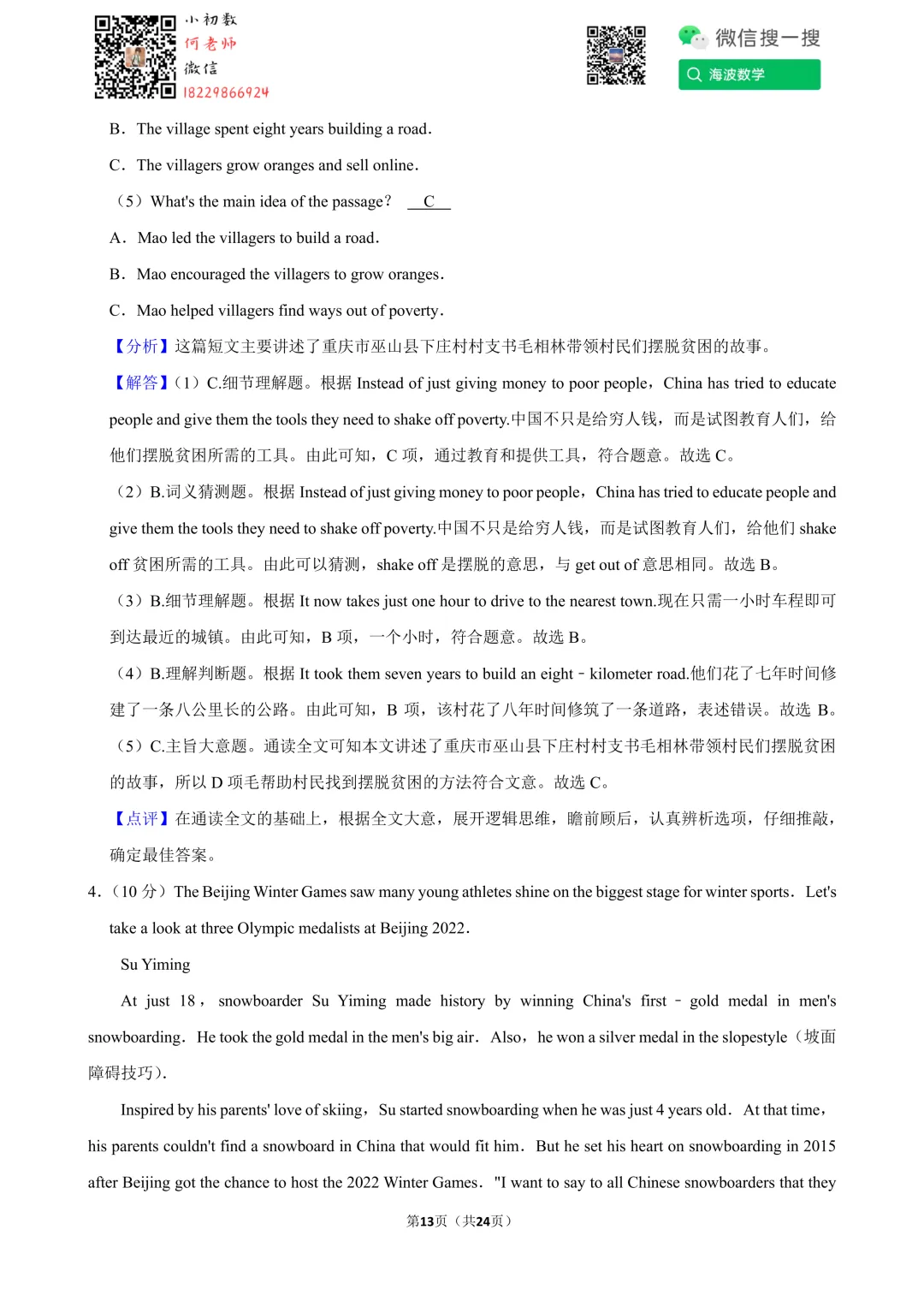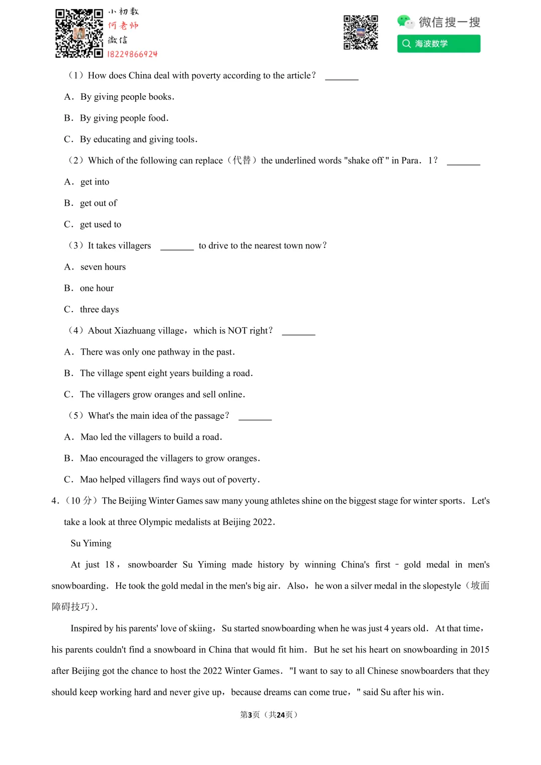 ①扫码添加何老师微信进对应年级资料分享微信群