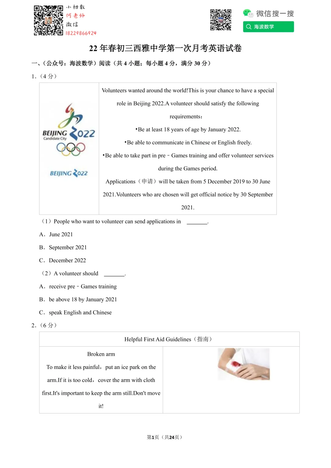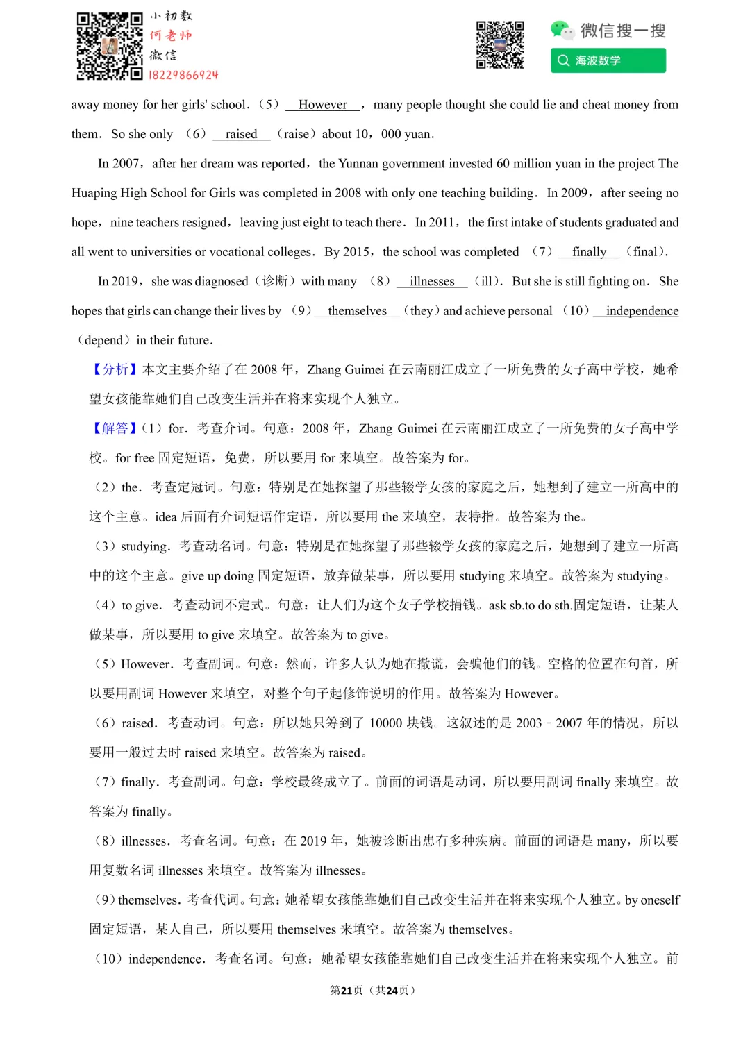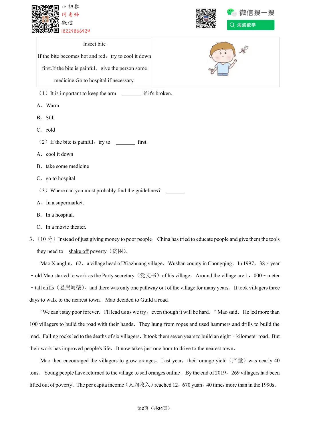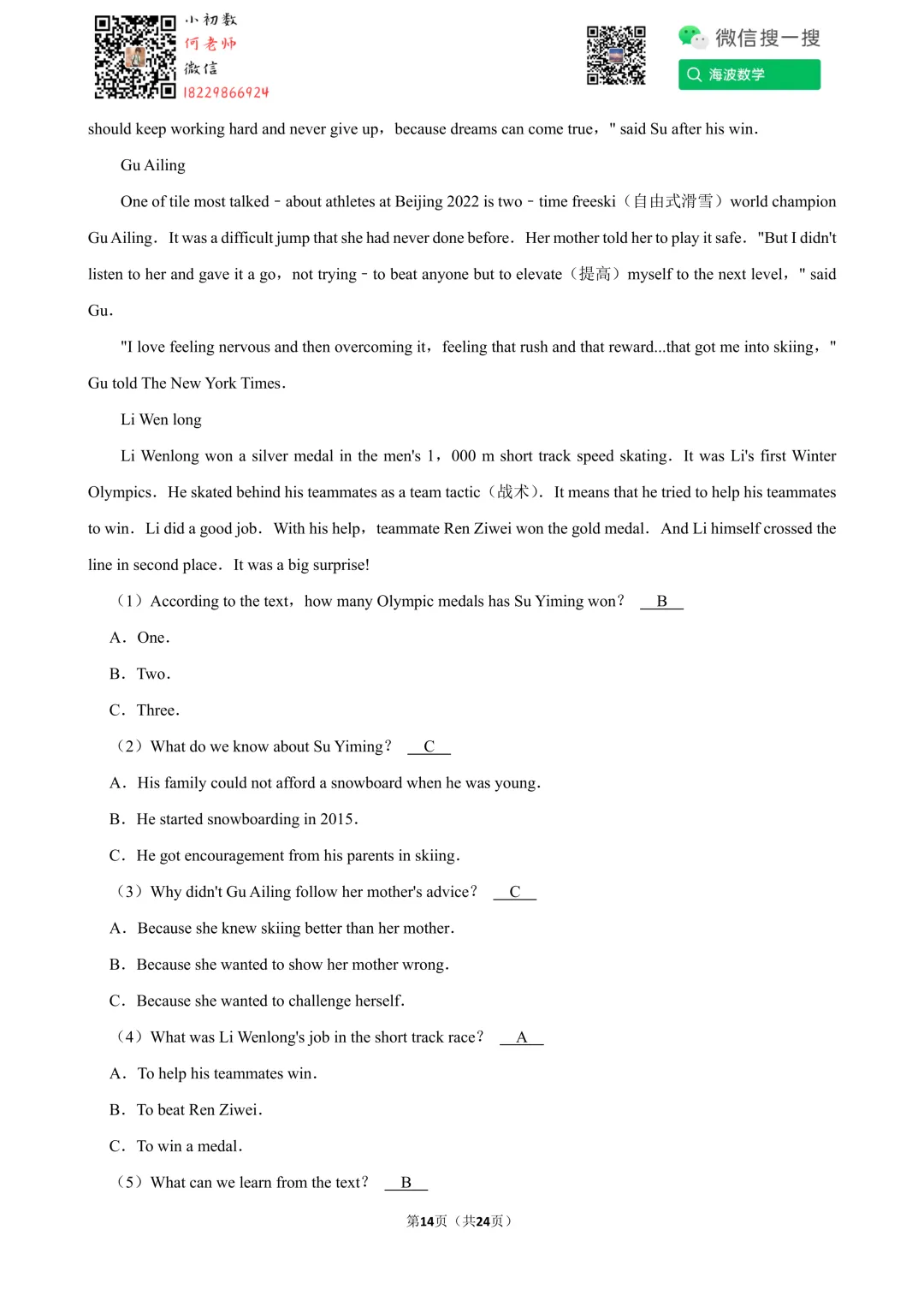 ①扫码添加何老师微信进对应年级资料分享微信群