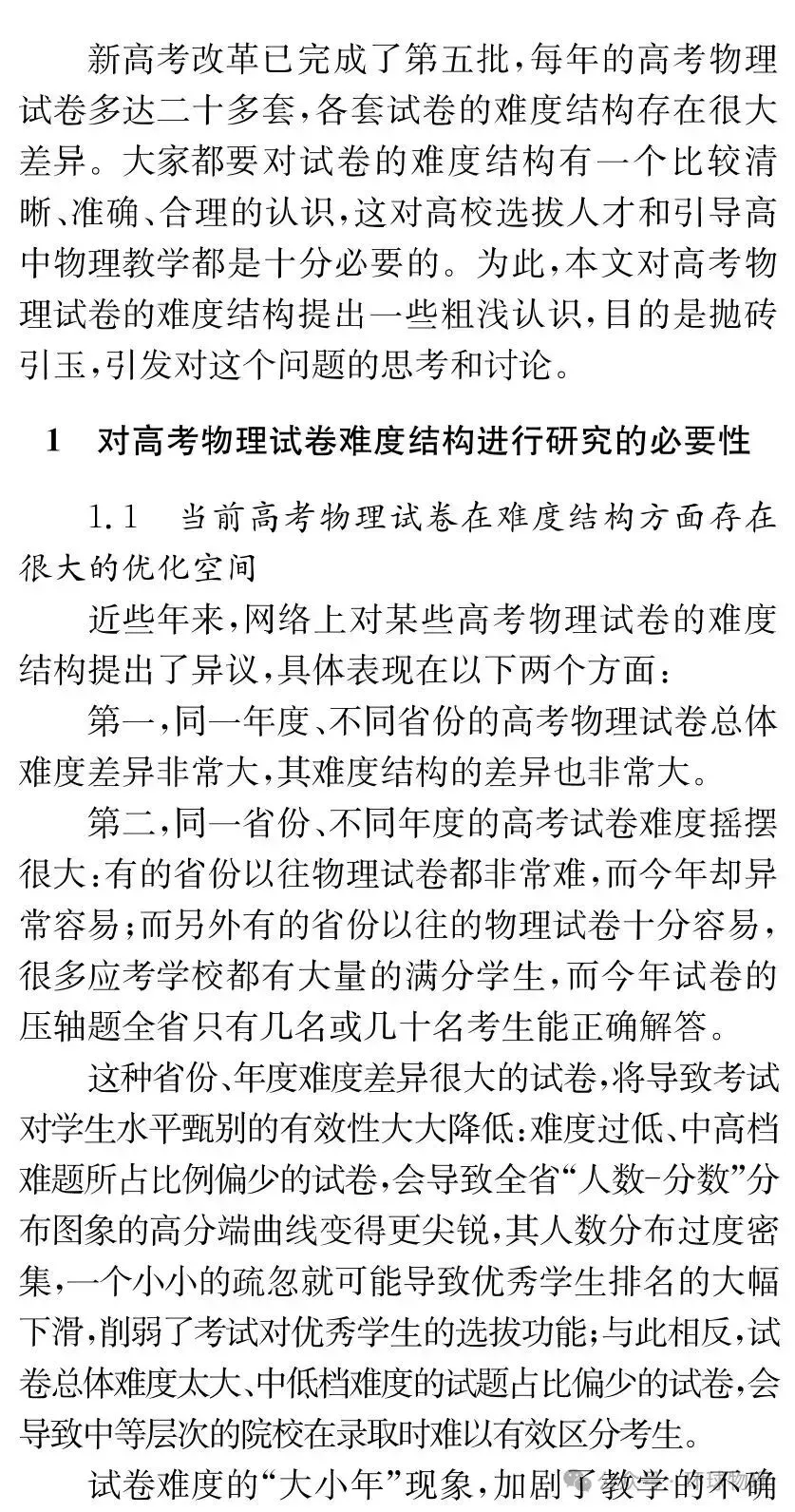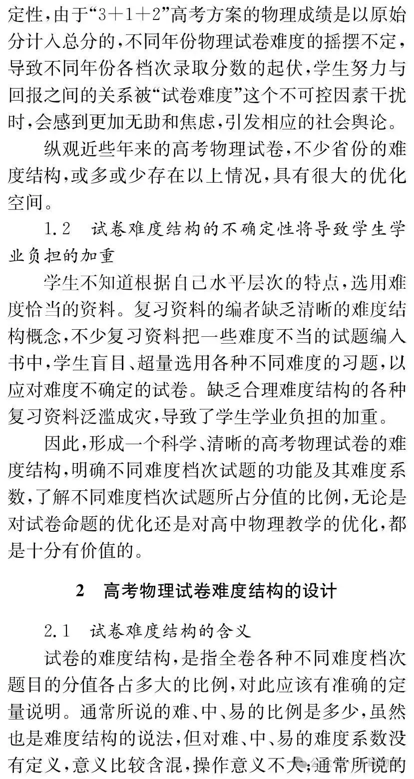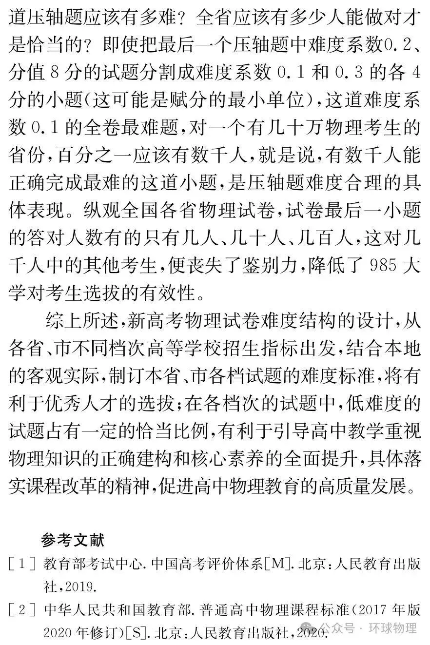 >【转发论文】新高考物理试卷难度结构设计的一些思考和看法