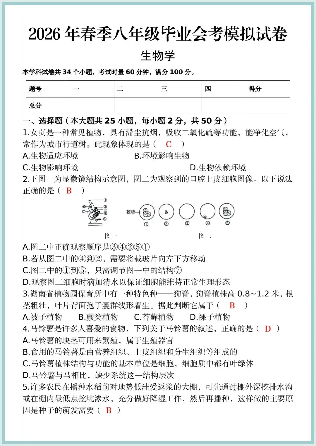 2026春季八年级下册生物会考模拟试卷,电子版可编辑可打印!!如果觉得这份资料不错,建议分享到班级群/年级群,让其他家长打印出来,帮助孩子学习!▼▼▼▼