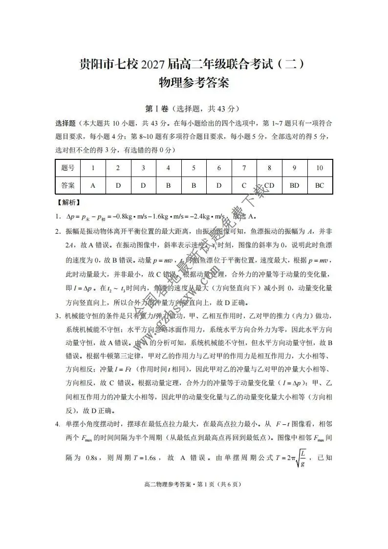 《高中试卷》贵州省贵阳市七校2025-2026学年高二上学期12月联考物理试卷(含答案)