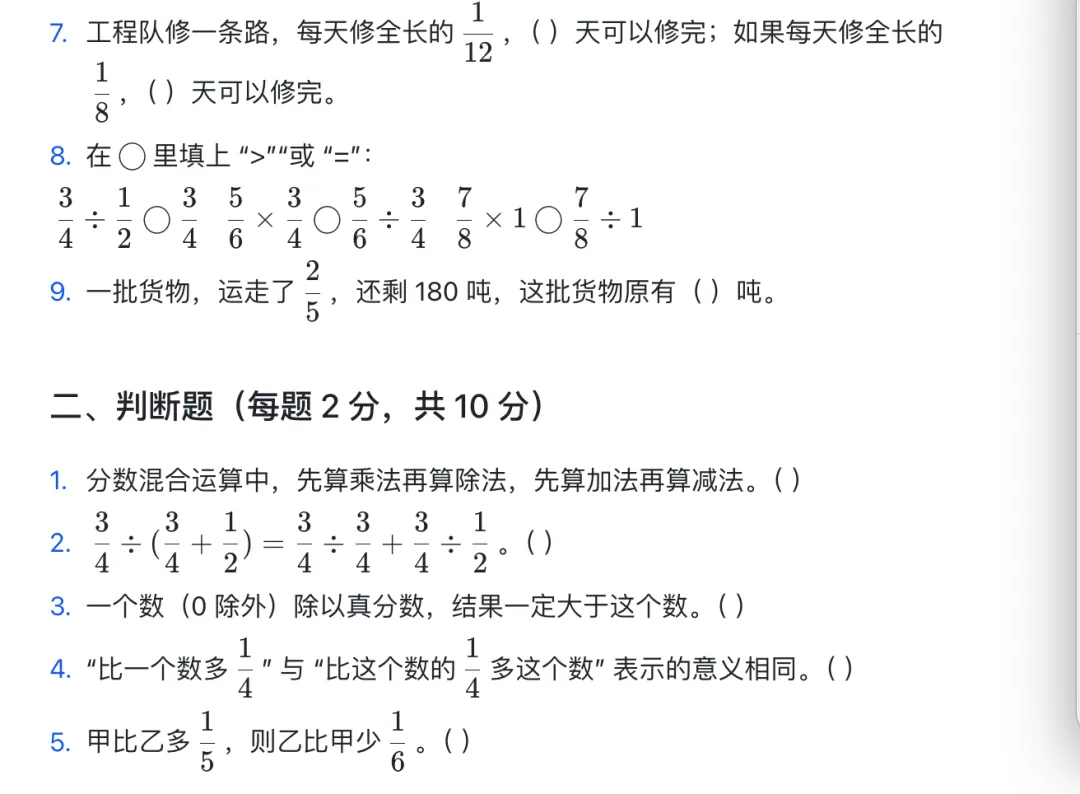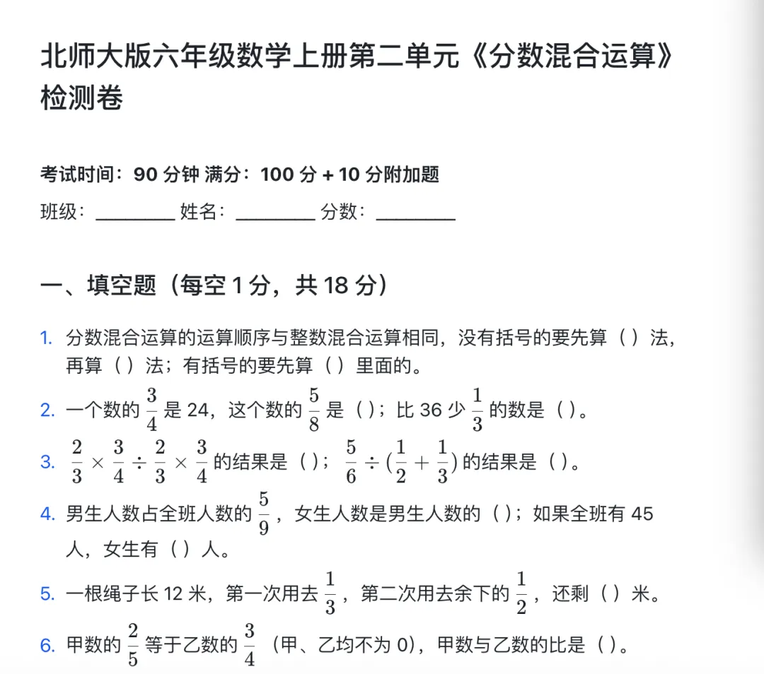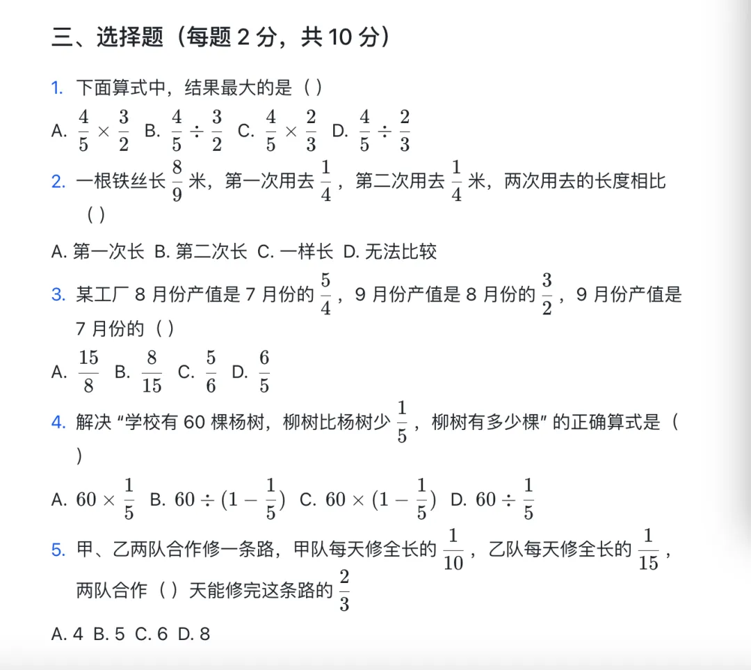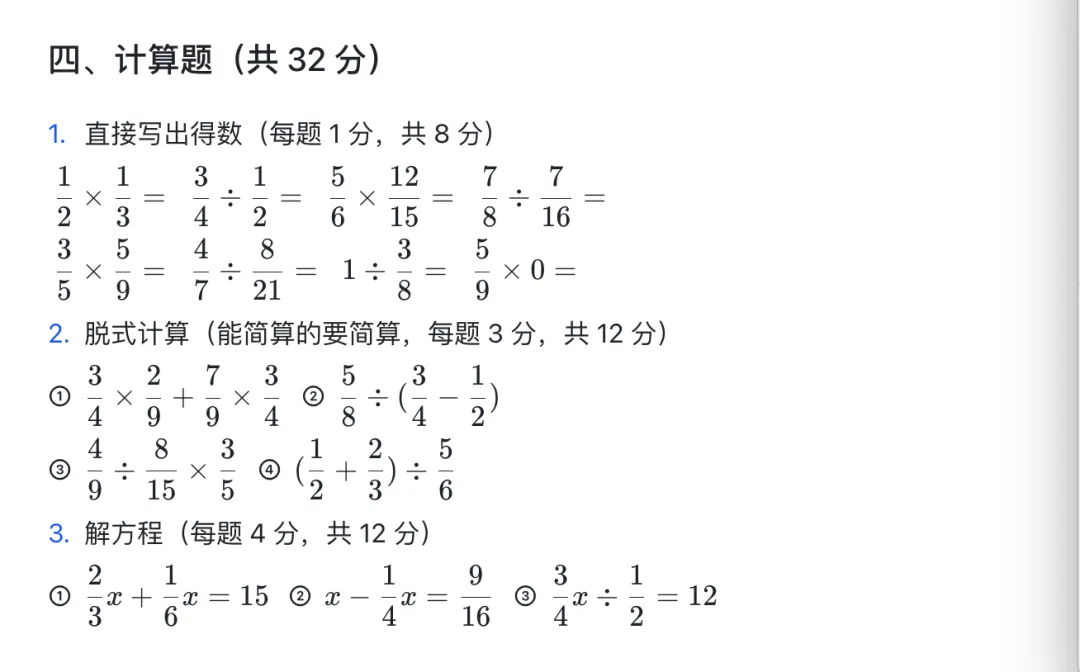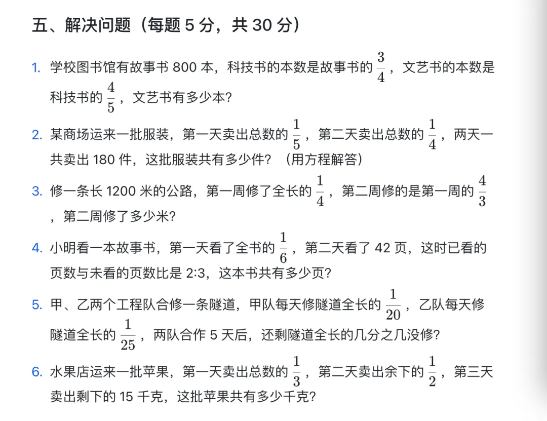 >六年级复习试卷