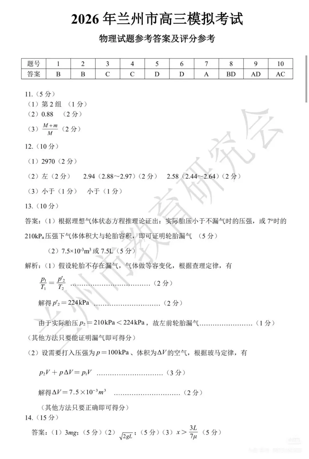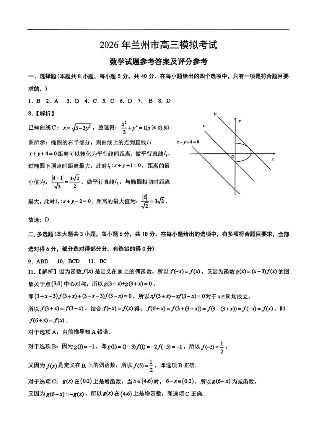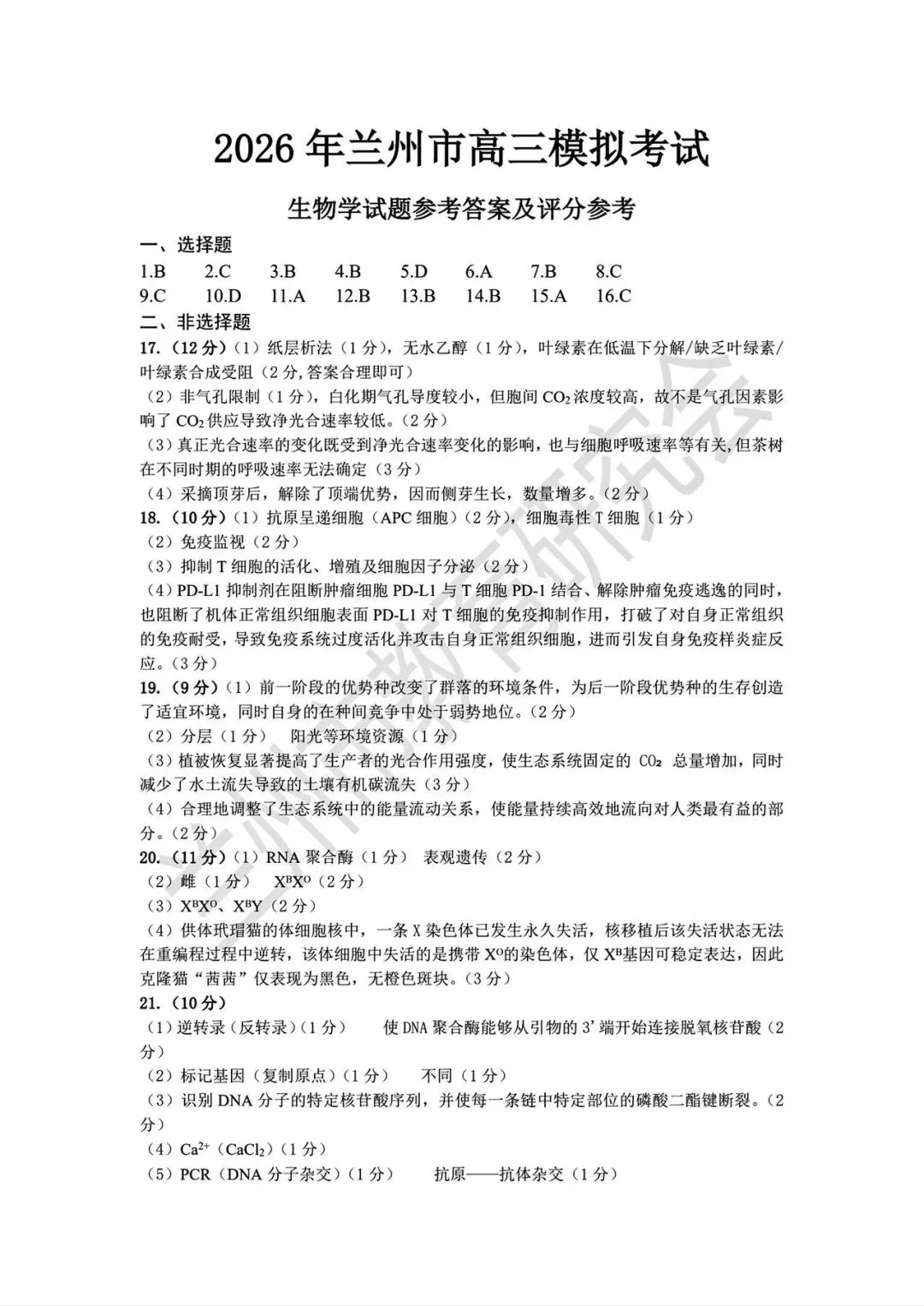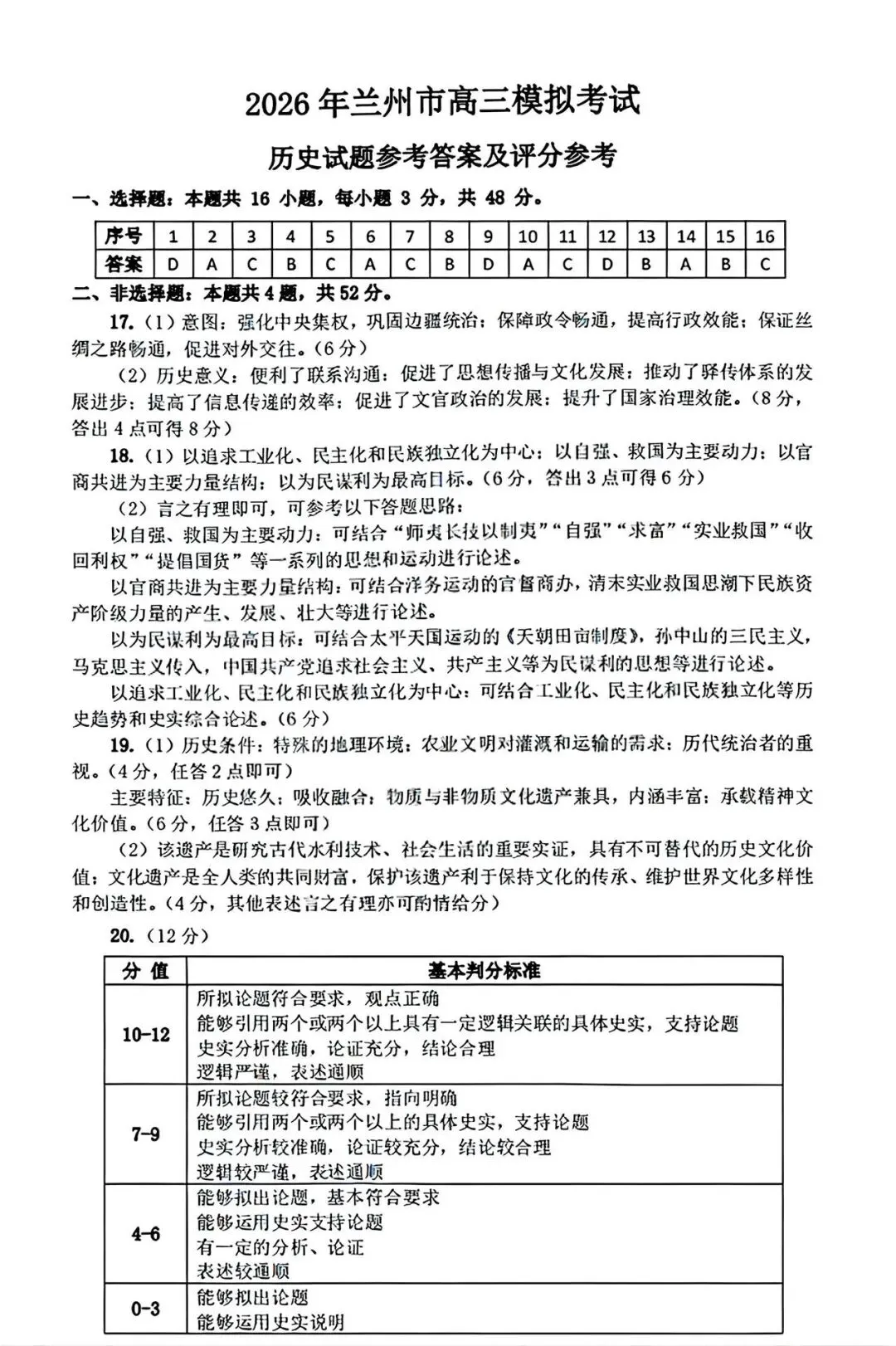 《珍藏版》2026年兰州市高三一诊试卷全科答案汇总
