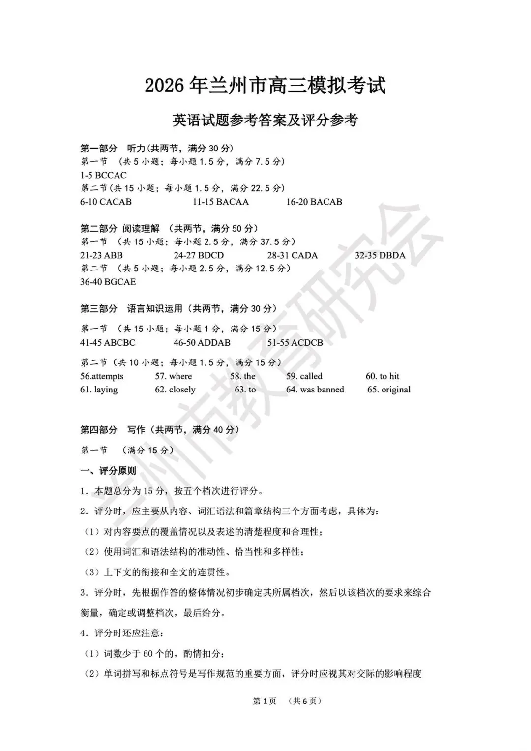 >《珍藏版》2026年兰州市高三一诊试卷全科答案汇总