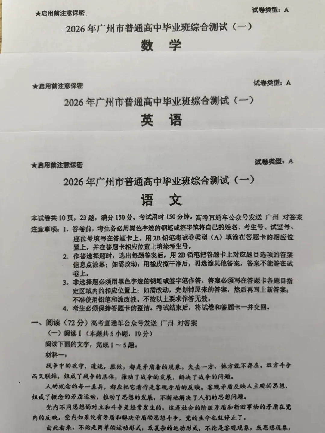 考试名称:广州一模2026年广州市普通高中毕业班综合测试(一)