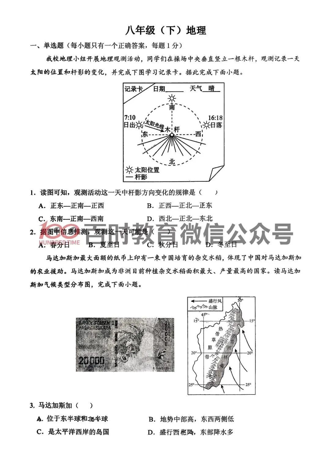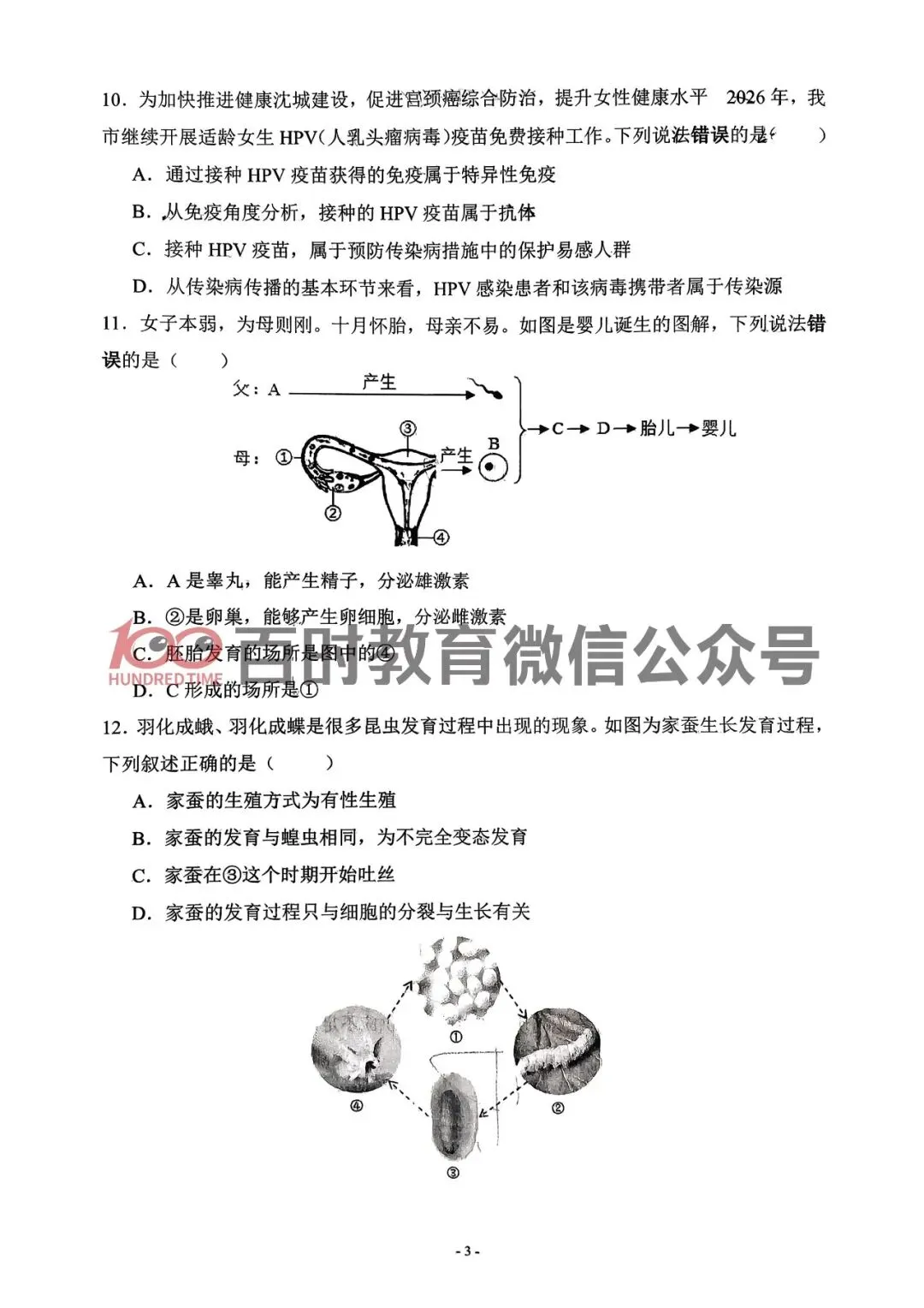 初三期初试卷!育才初三真题+沈阳初二生物地理真题!
