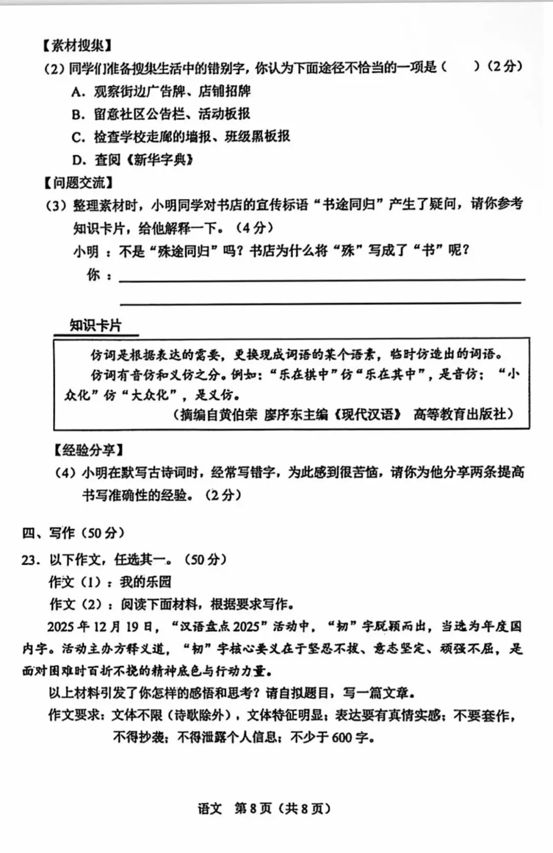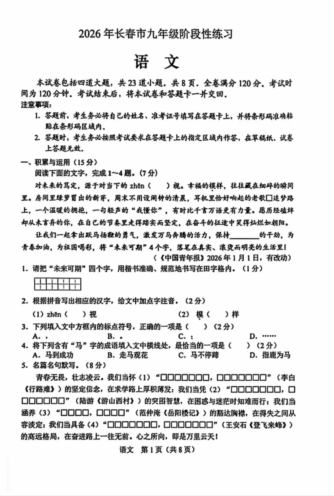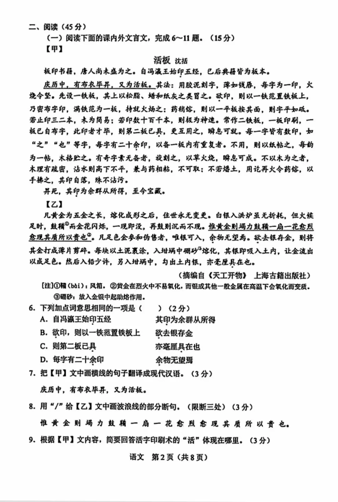 2026届高三苏锡常镇一模语文试卷及评分参考出炉