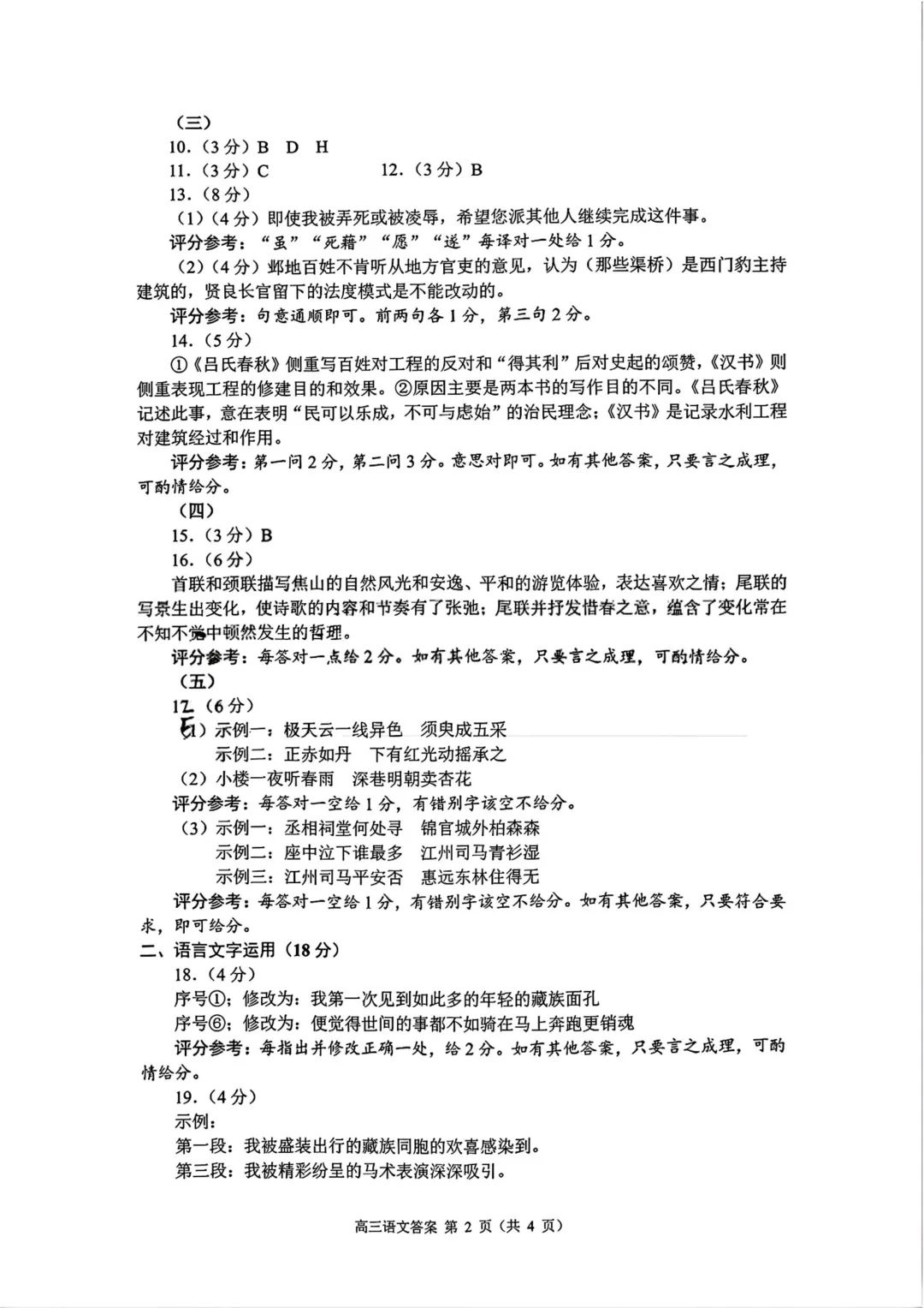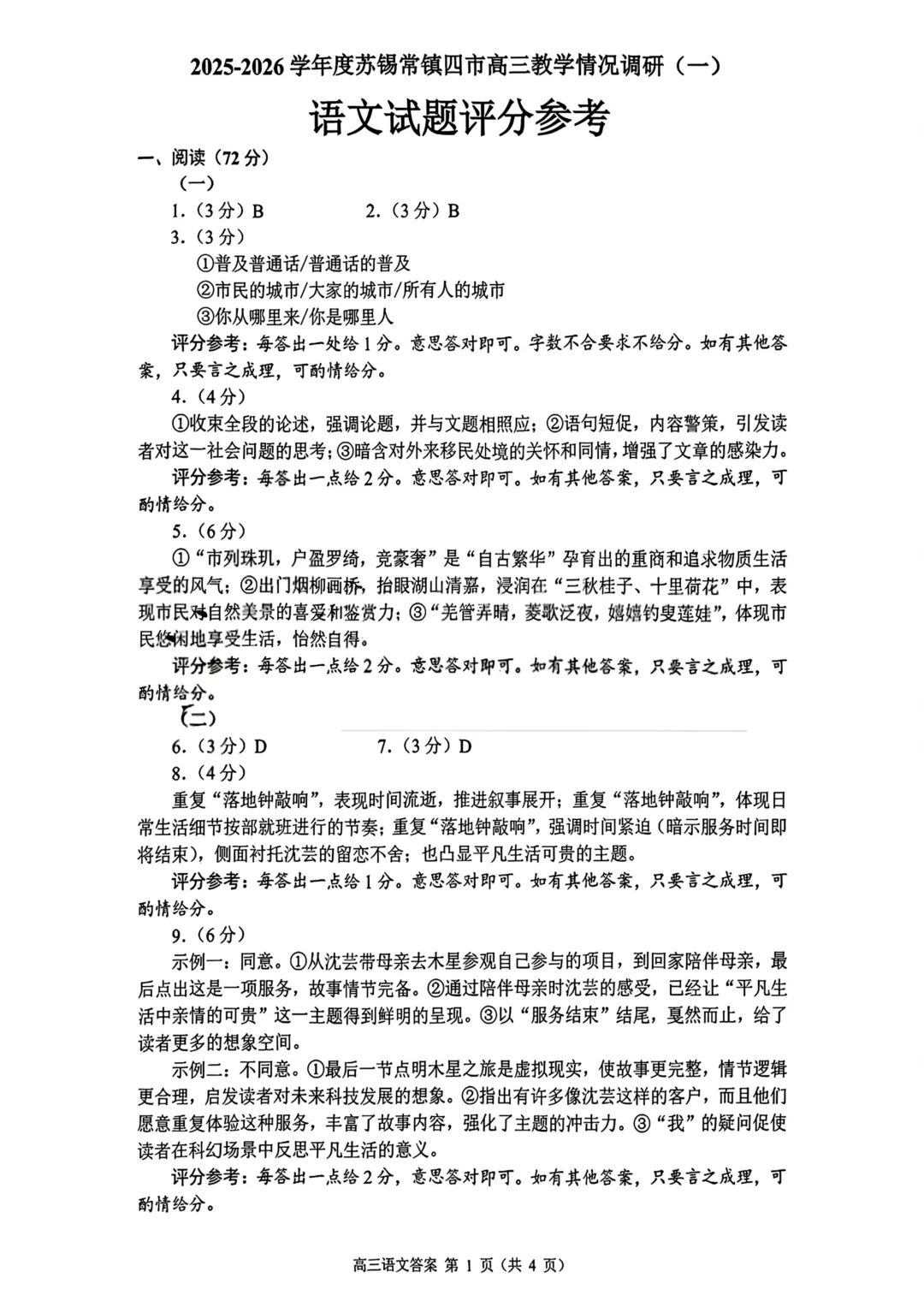 2026届高三苏锡常镇一模语文试卷及评分参考出炉