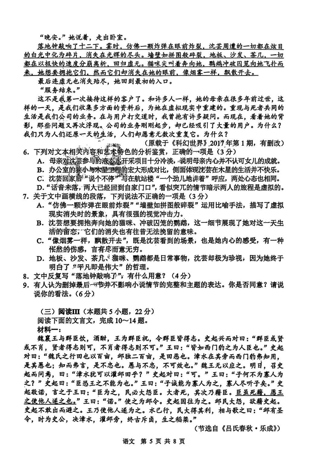长春2026九年级一模语文试卷