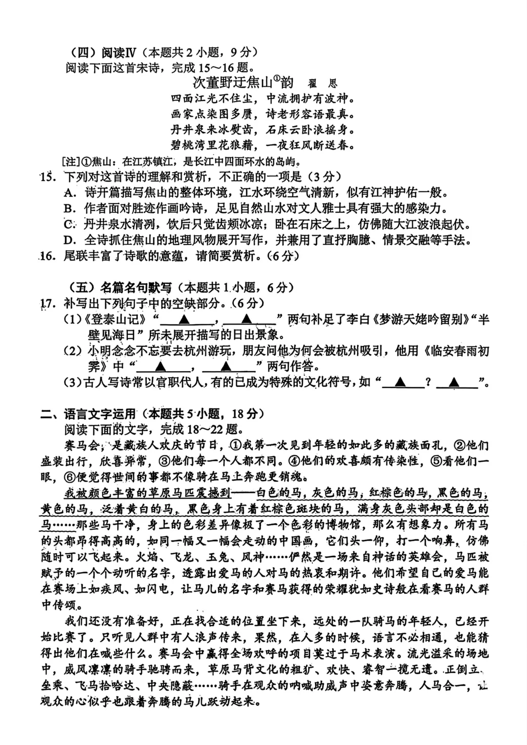 2026苏锡常镇高三一模语文试卷及答案