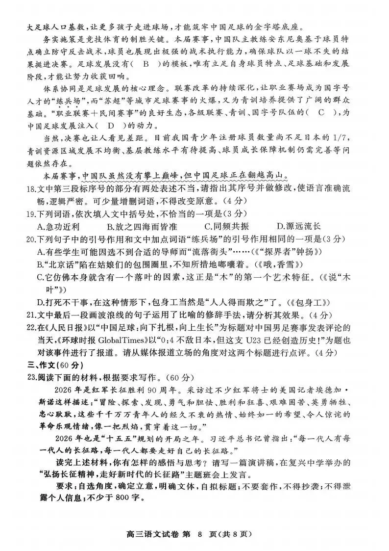 2026语文+数学+英语金考卷特快专递《一模精选卷》