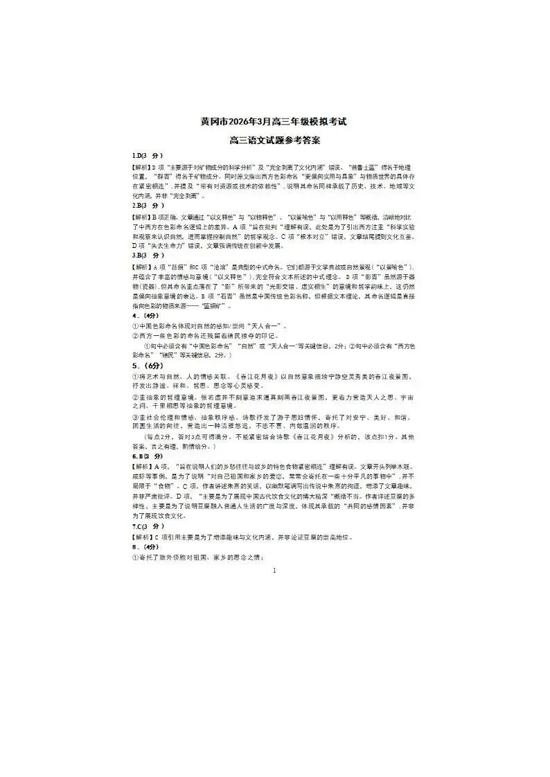 2026届湖北黄冈市高三黄冈二模考试