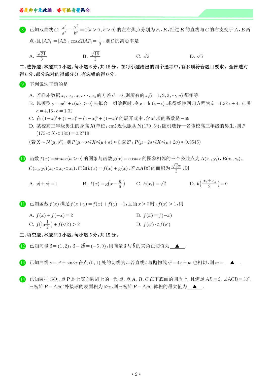 【试卷+答案】金丽衢十二校2026学年高三第二次3月联考全科汇总!