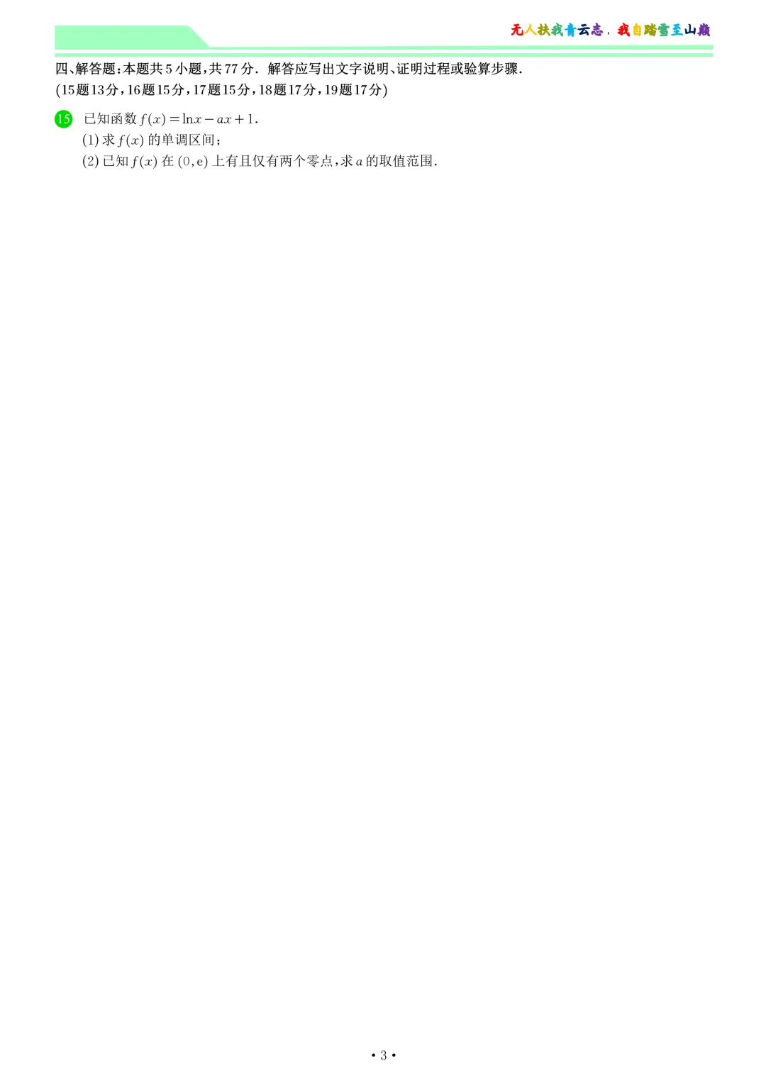 试卷分享---2025年一中双十七下3月月考数学卷