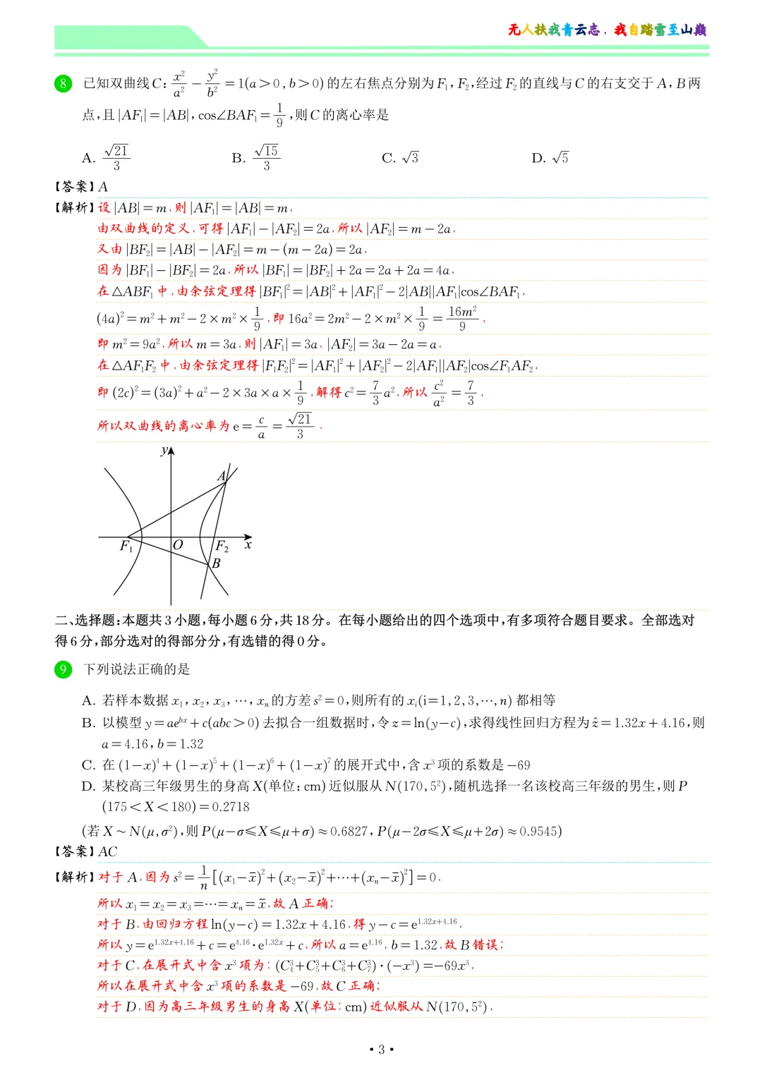 【试卷解析】3.17号广州一模