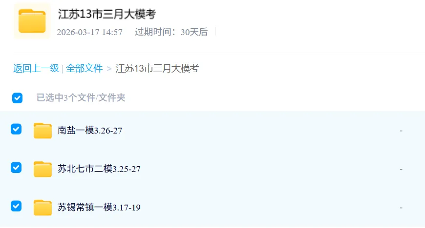 江苏十三市26届高三3月模考试卷陆续更新