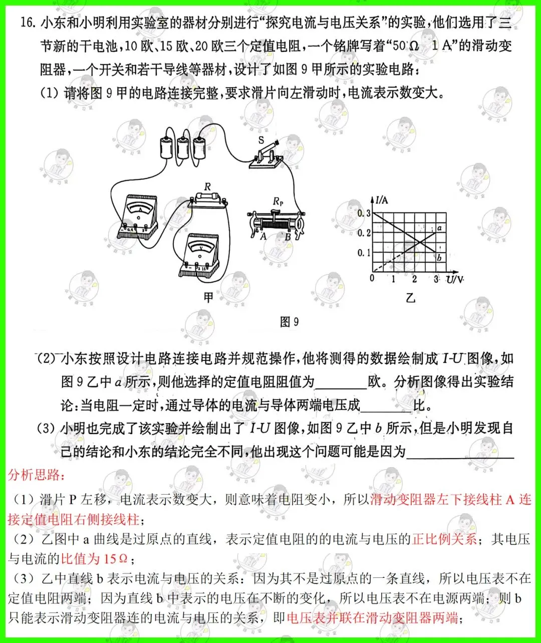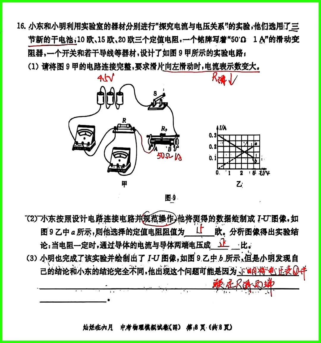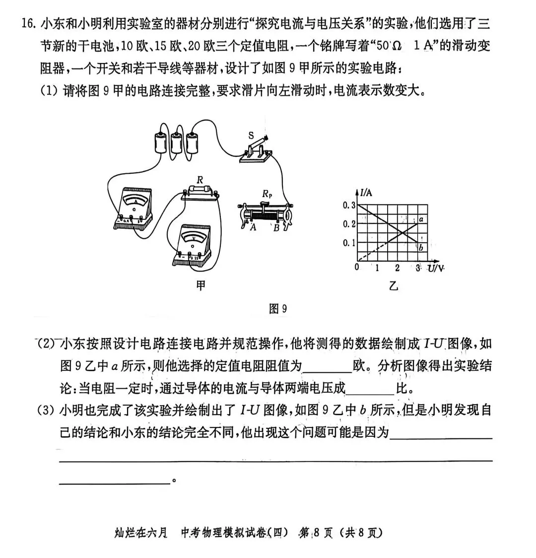 第16题:电学实验题,考查欧姆定律实验的电路特点,重点理解电路的连接方式以及电压表并联位置的判断;