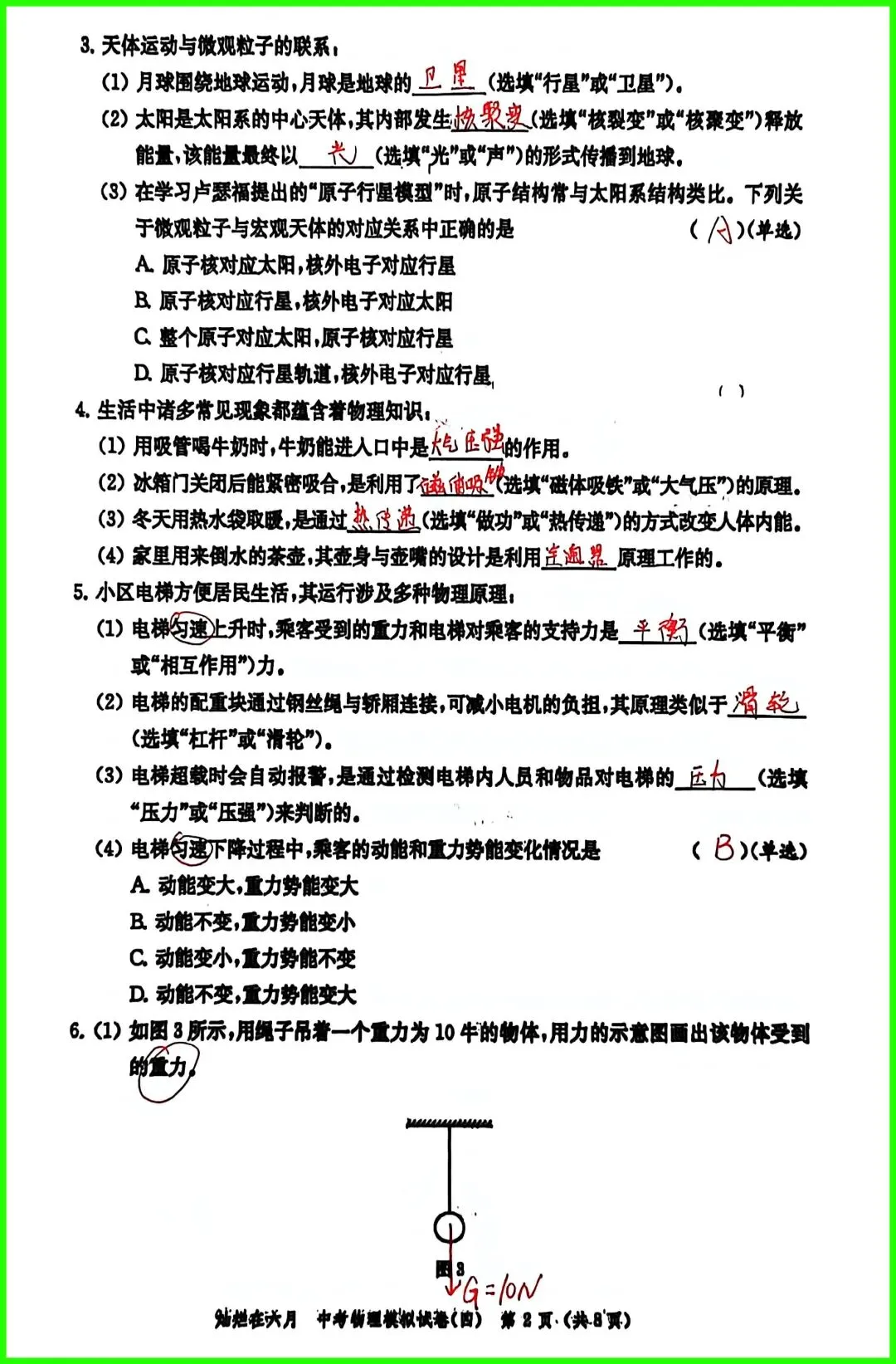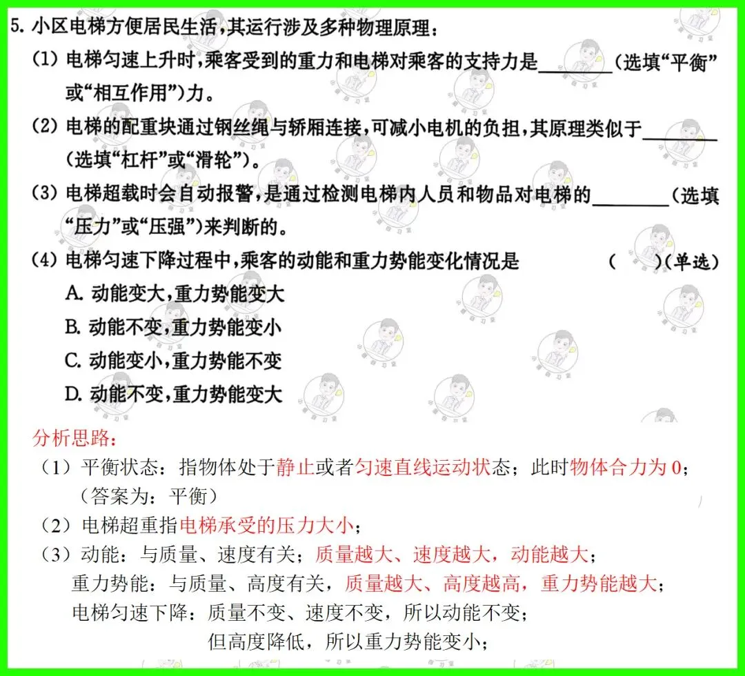 第5题:考查物体运动中平衡状态的判断,理解物体动能、势能的影响因素;