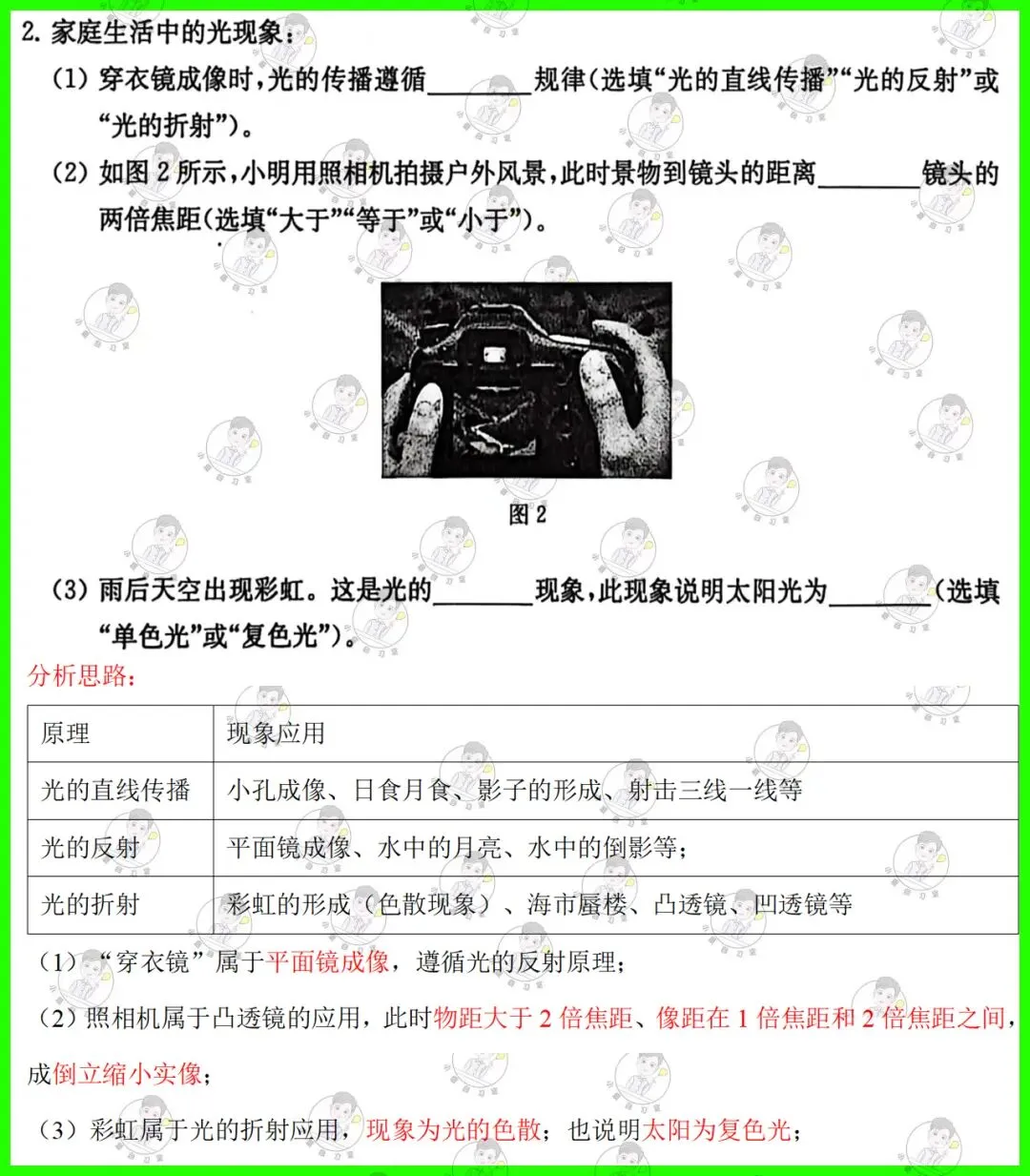 第2题:考查光的反射、折射的应用,牢记原理以及对应的现象;